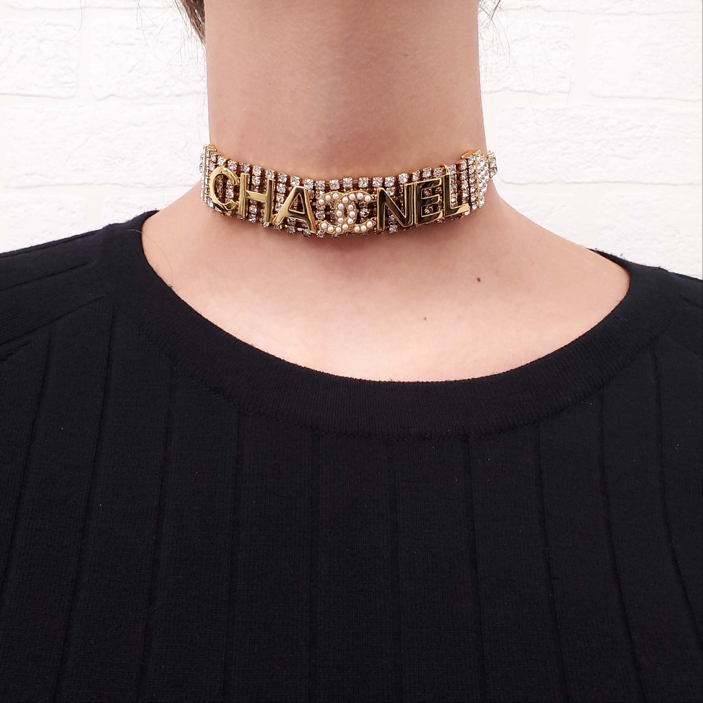 CHANEL CRYSTAL LOGO CHOKER NECKLACE