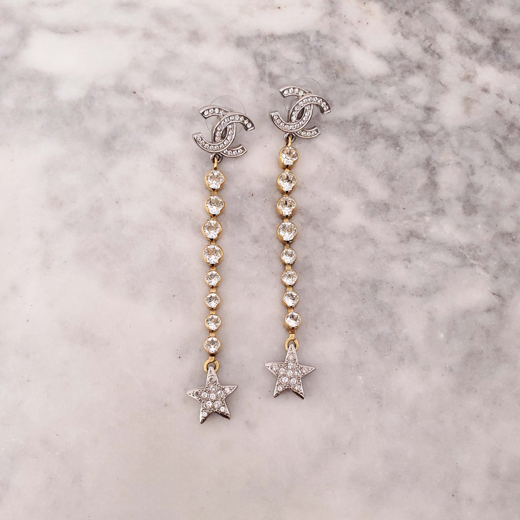 CHANEL CRYSTAL LOGO DROP EARRINGS WITH STARS