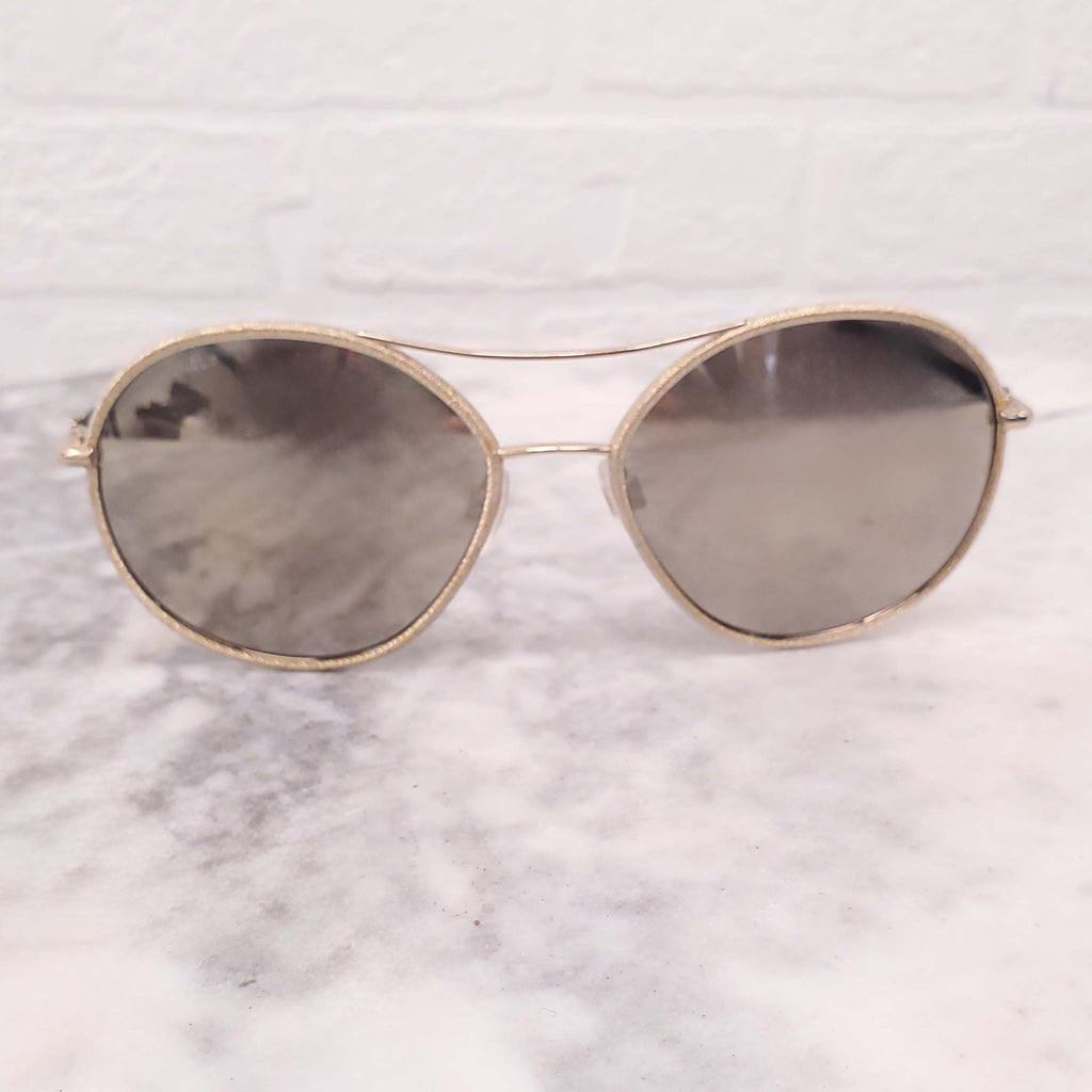 CHANEL GOLD METALLIC SUIT WITH FLORAL LOGO BUTTONS - SIZE 40