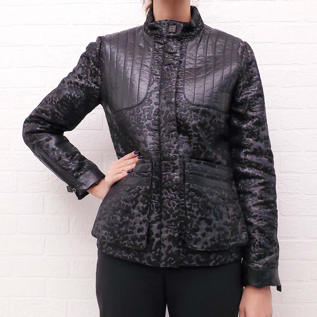 CHANEL LEOPARD EMBROIDERED LEATHER JACKET - SIZE 38
