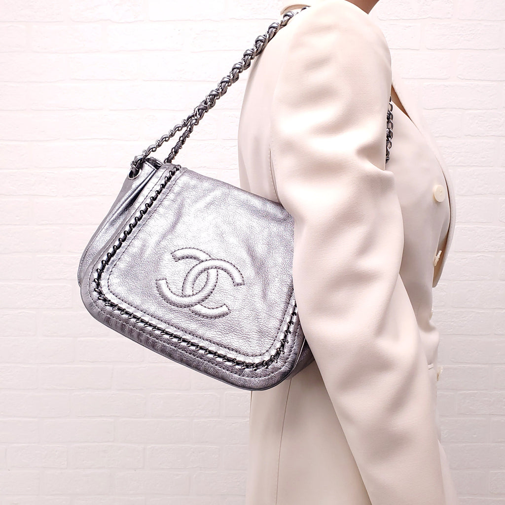 CHANEL LUXE LIGNE ACCORDION SILVER FLAP BAG