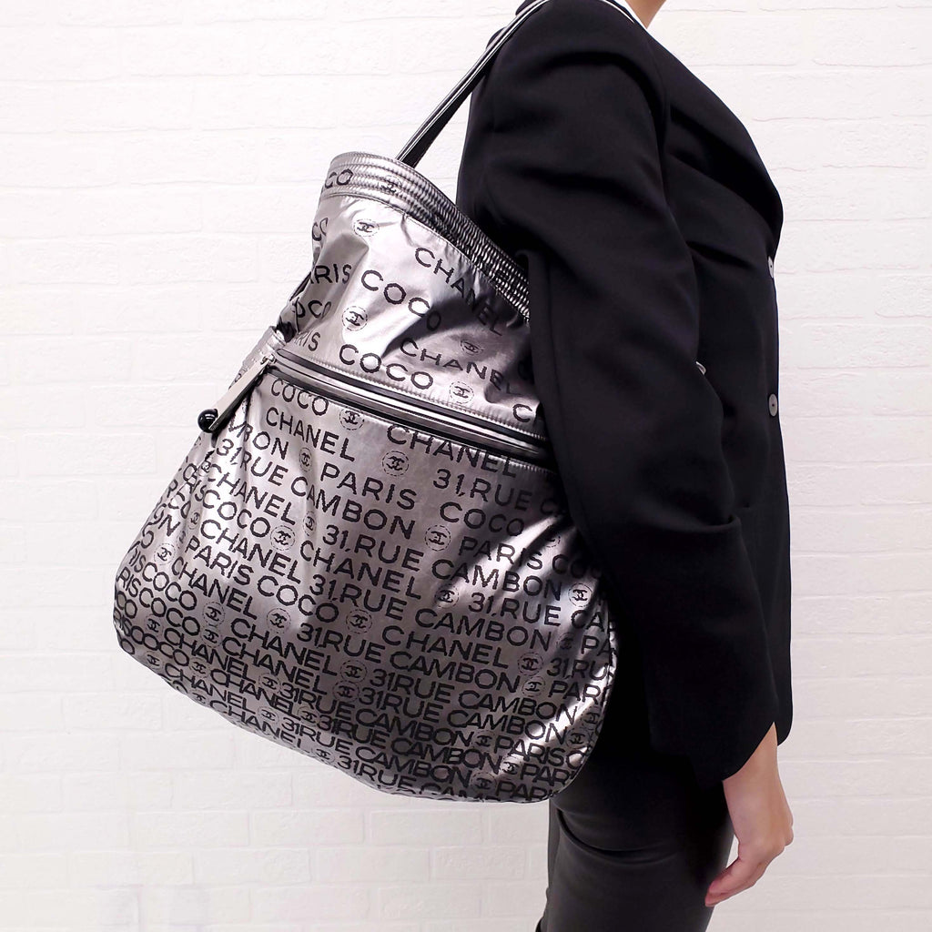 CHANEL METALLIC SILVER AND BLACK COATED CANVAS 'UNLIMITED LIGNE' SHOULDER BAG