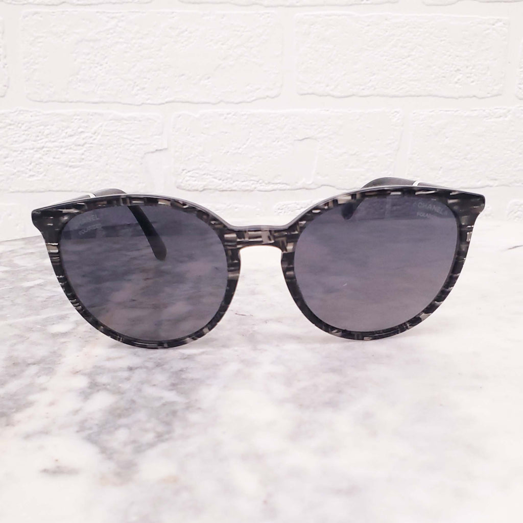 CHANEL PATTERNED ROUND SUNGLASSES WITH PEARL DETAIL