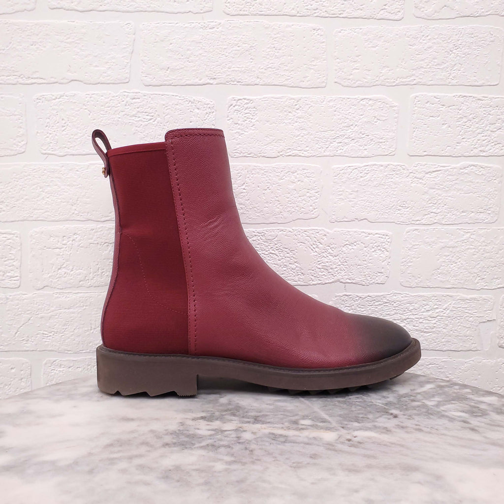 SALVATORE FERRAGAMO BURGUNDY OMBRE LEATHER CHELSEA BOOTS - SIZE 8