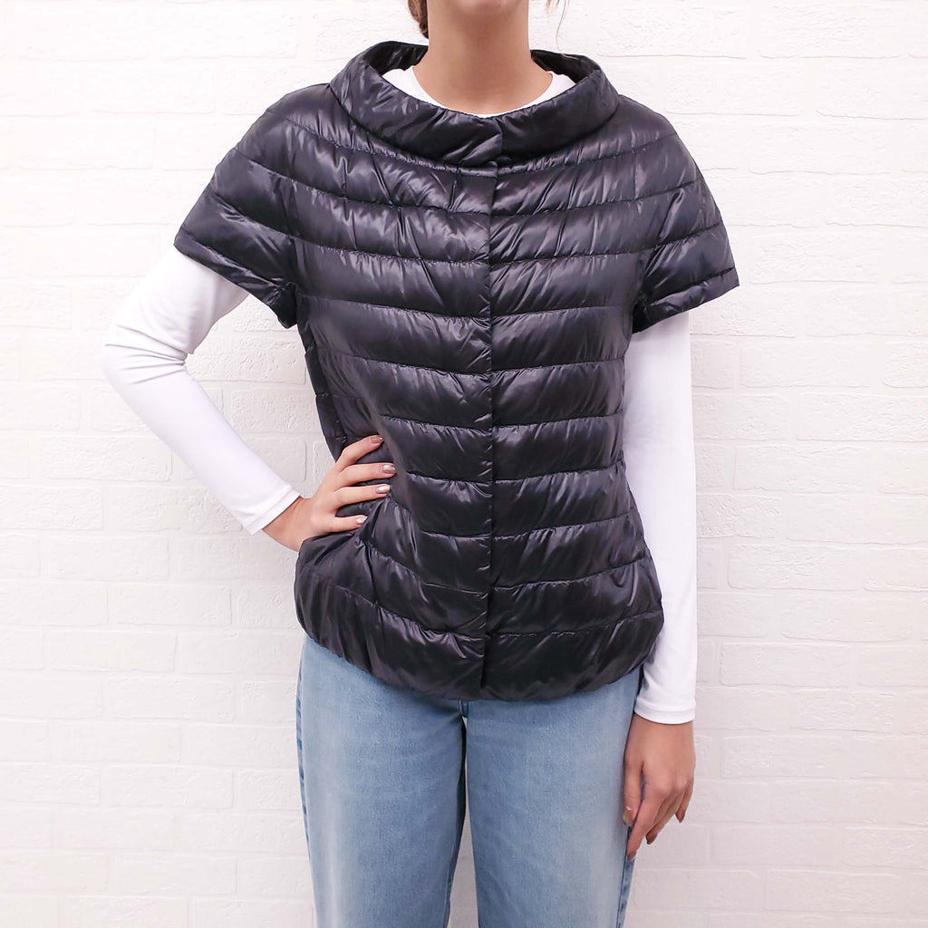 HERNO BLACK SHORT SLEEVE PUFFER JACKET - SIZE 46