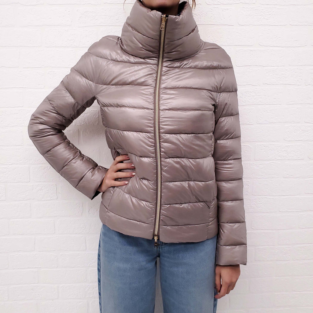 HERNO BEIGE SHORT SLEEVE PUFFER JACKET - SIZE 42