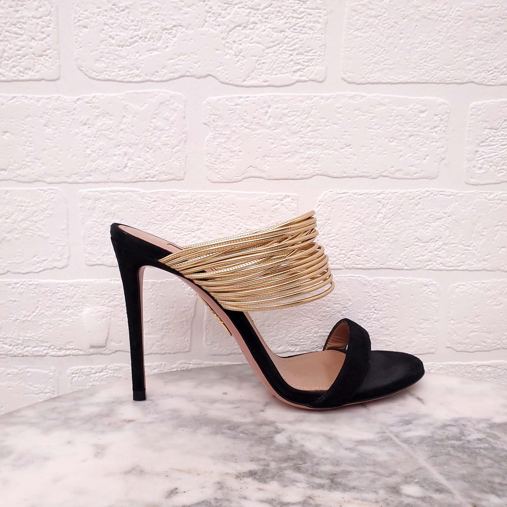 AQUAZZURA BLACK AND GOLD HEELS - SIZE 36.5