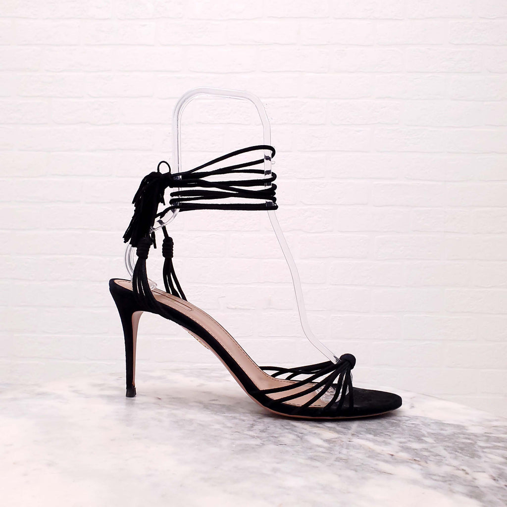 AQUAZZURA BLACK SUEDE ANKLE STRAP HEELS - SIZE 41
