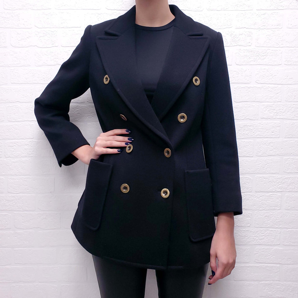 CHLOÉ BLACK WOOL PEACOAT WITH GOLD BUTTONS - SIZE 40