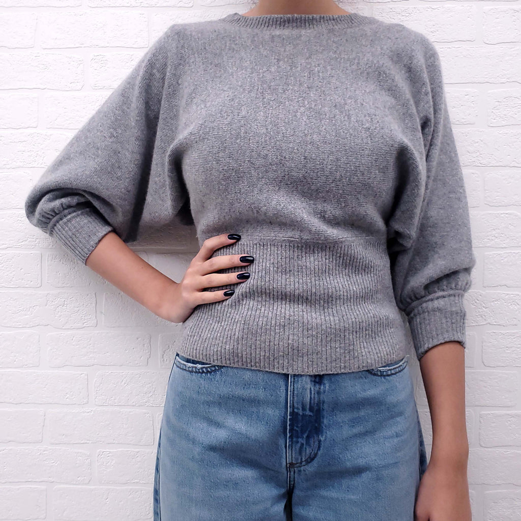 CHLOÉ GREY CASHMERE SYNCHED WAIST SWEATER - SIZE XS