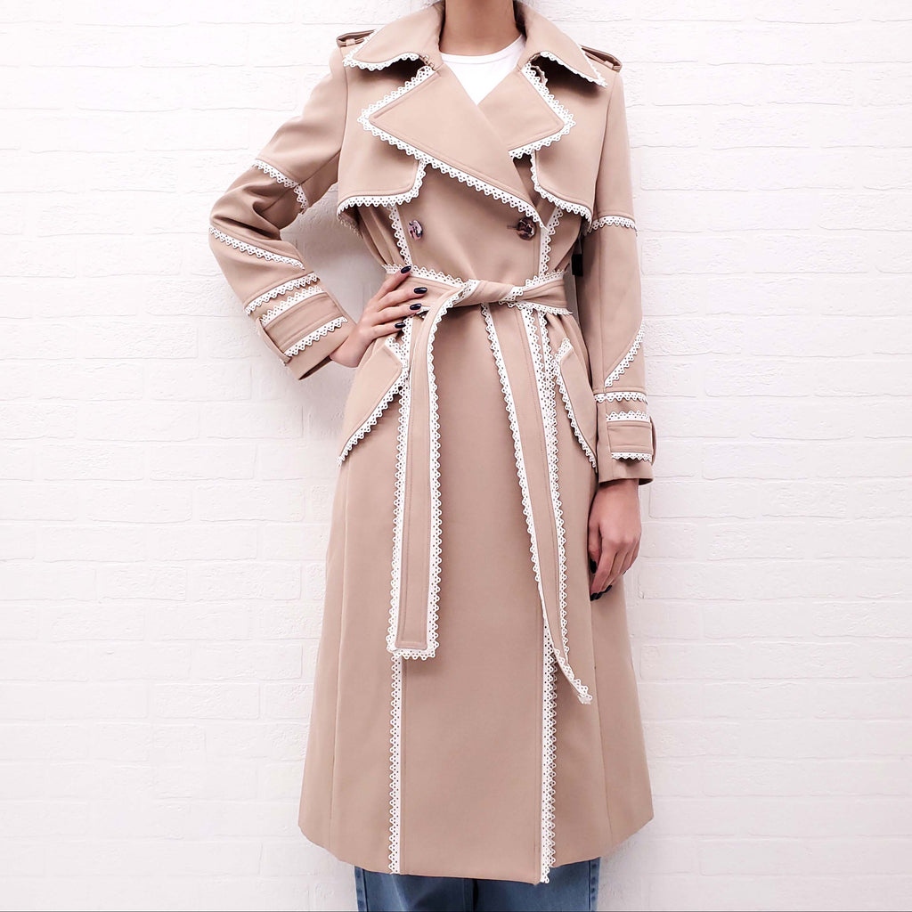 CHLOÉ KHAKI TRENCH COAT WITH WHITE LEATHER EYELET DETAIL - SIZE 36
