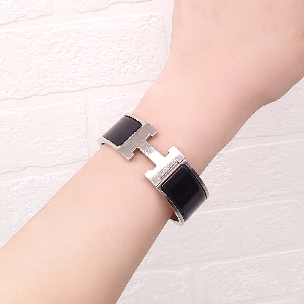 HERMÈS BLACK AND SILVER 'CLIC CLAC' BRACELET - SIZE M