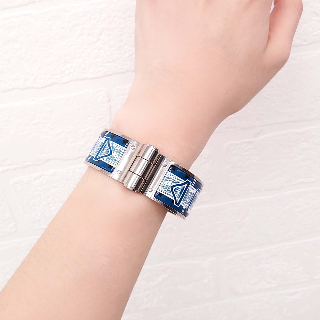 HERMÈS BLUE 'WIDE HINGED' ENAMEL BRACELET - SIZE L