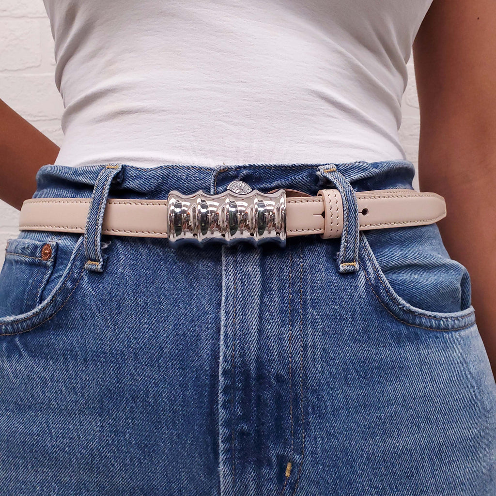 KHAITE PALE PINK 'JULIUS' BELT WITH SILVER HARDWARE - SIZE M/L