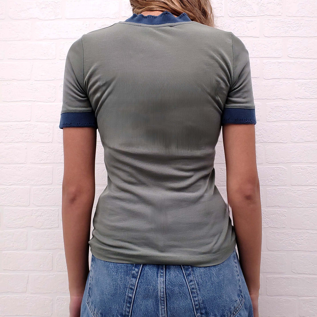 ACNE STUDIOS GREEN AND BLUE TWO-TONE RIBBED T-SHIRT - SIZE M