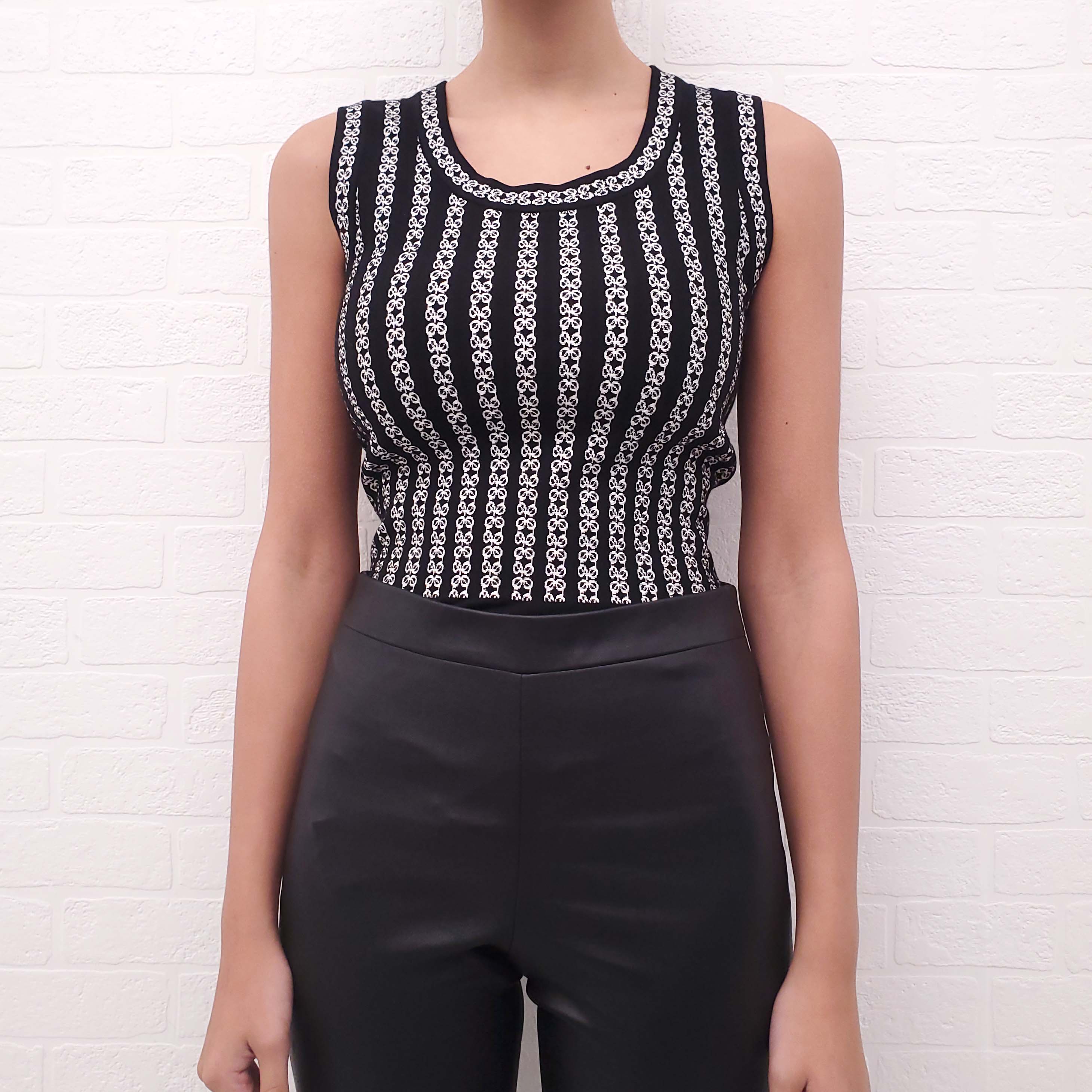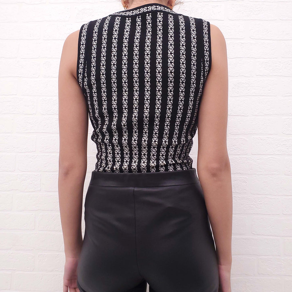 ALAÏA BLACK AND WHITE PATTERNED BODYSUIT - SIZE 38