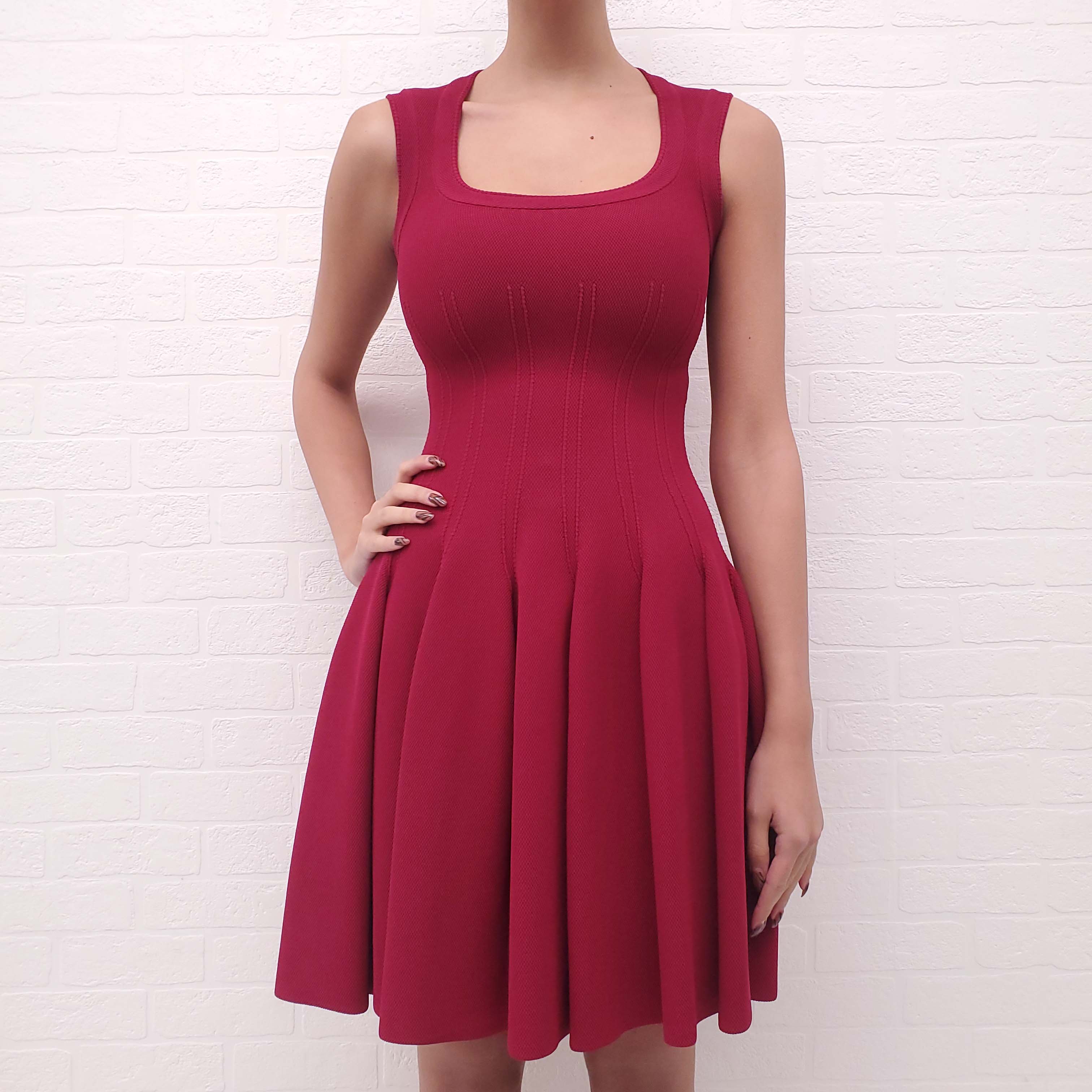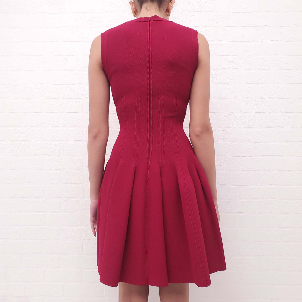 ALAÏA RASPBERRY FITTED PEPLUM DRESS - SIZE 38