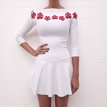 ALAÏA WHITE DRESS WITH RED FLOWERS - SIZE 36
