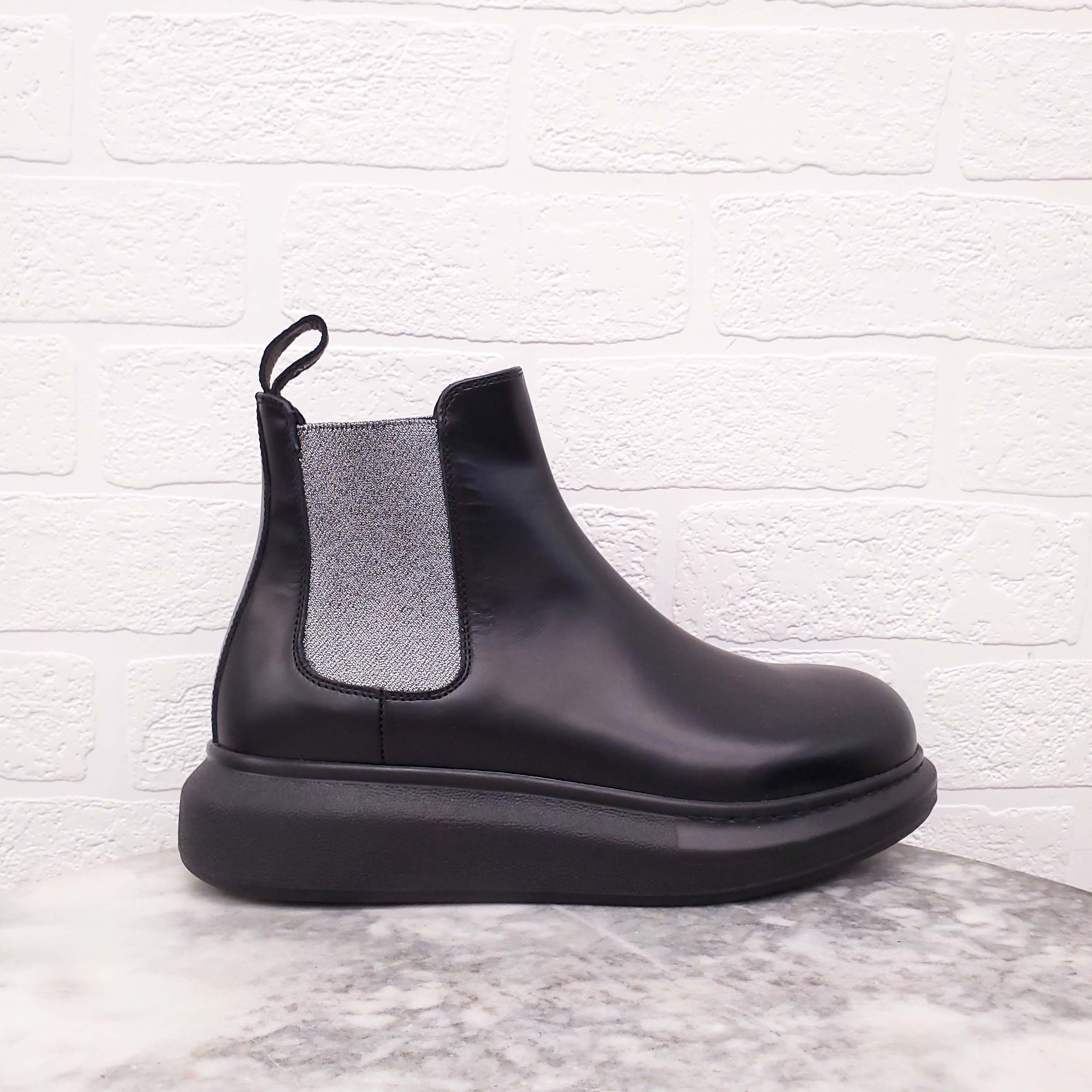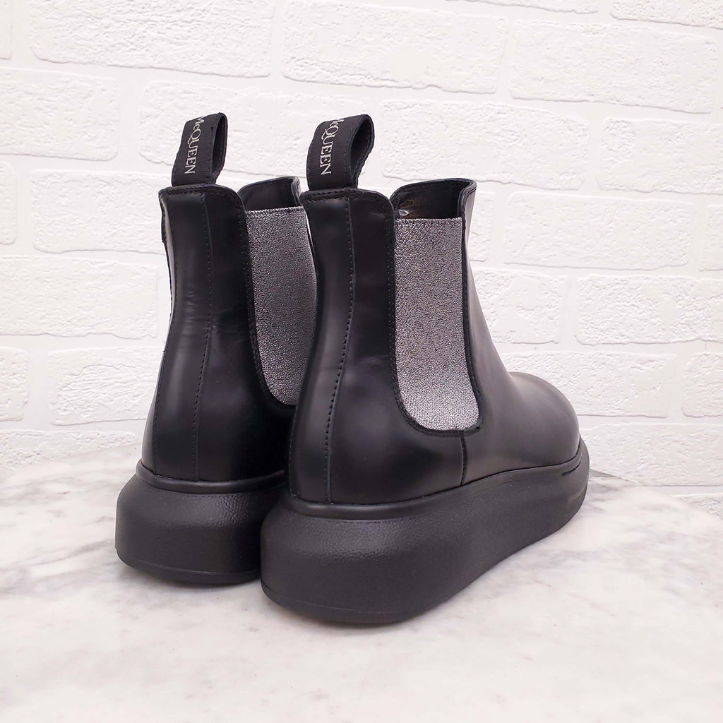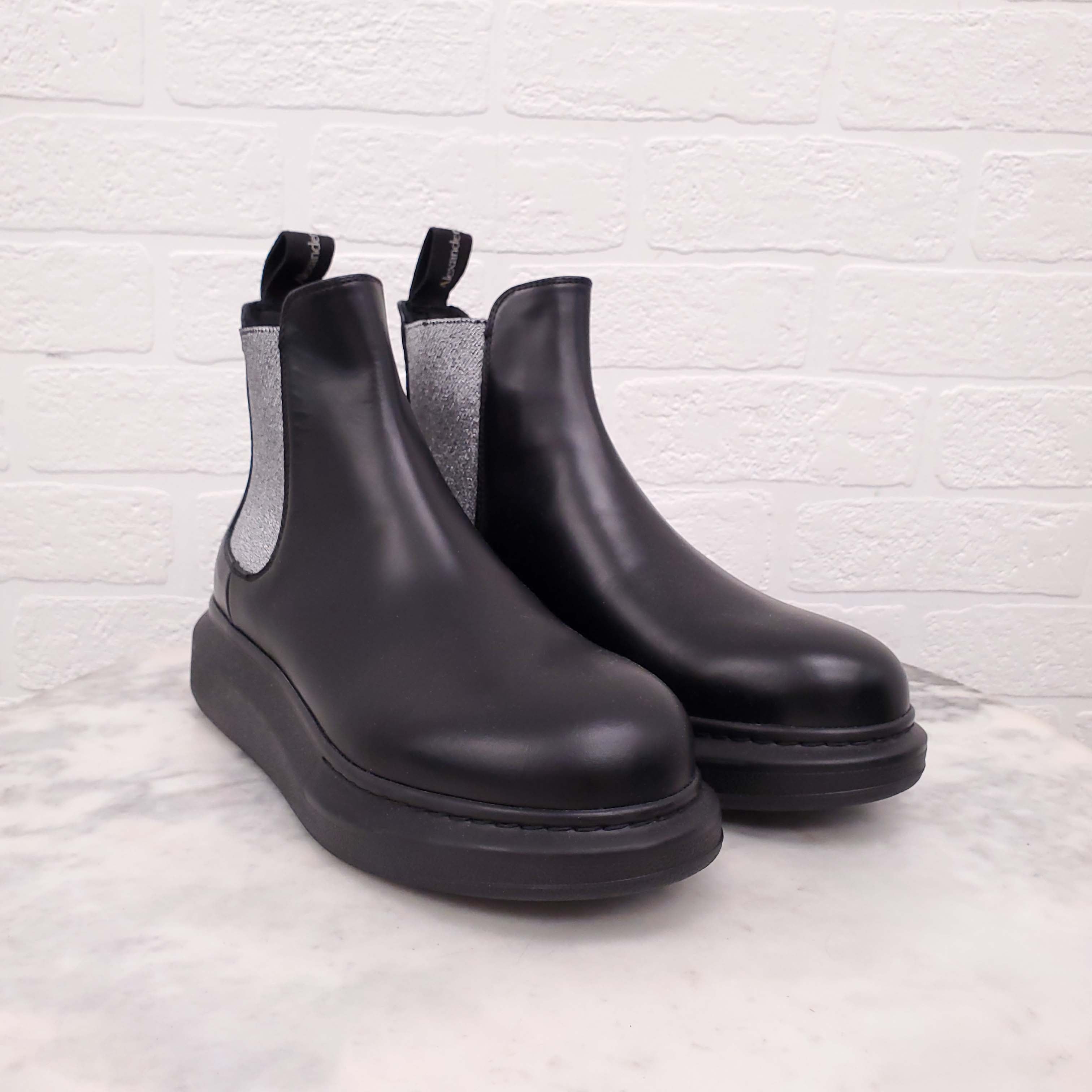 ALEXANDER MCQUEEN BLACK CHELSEA BOOTS WITH SILVER ELASTIC - SIZE 38.5