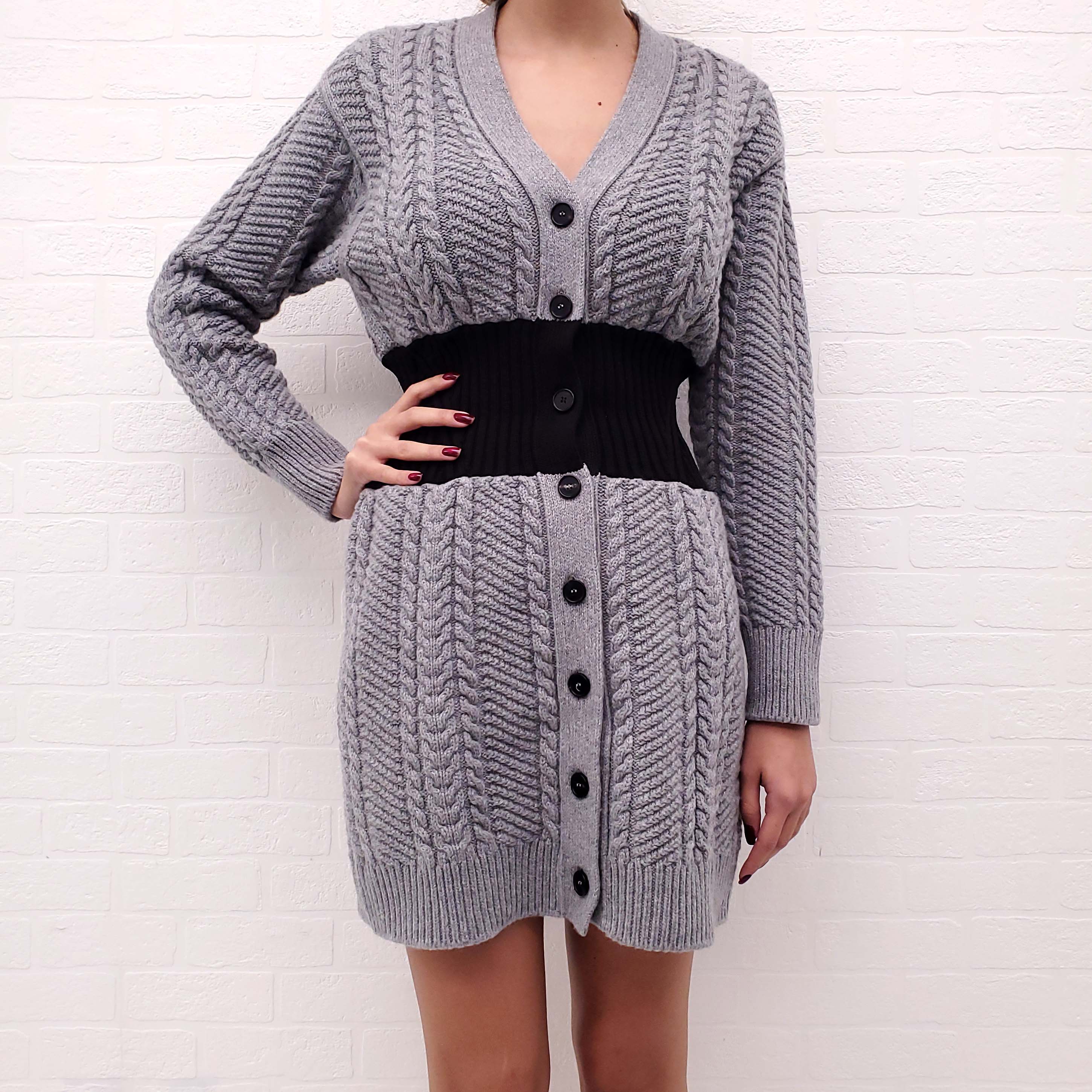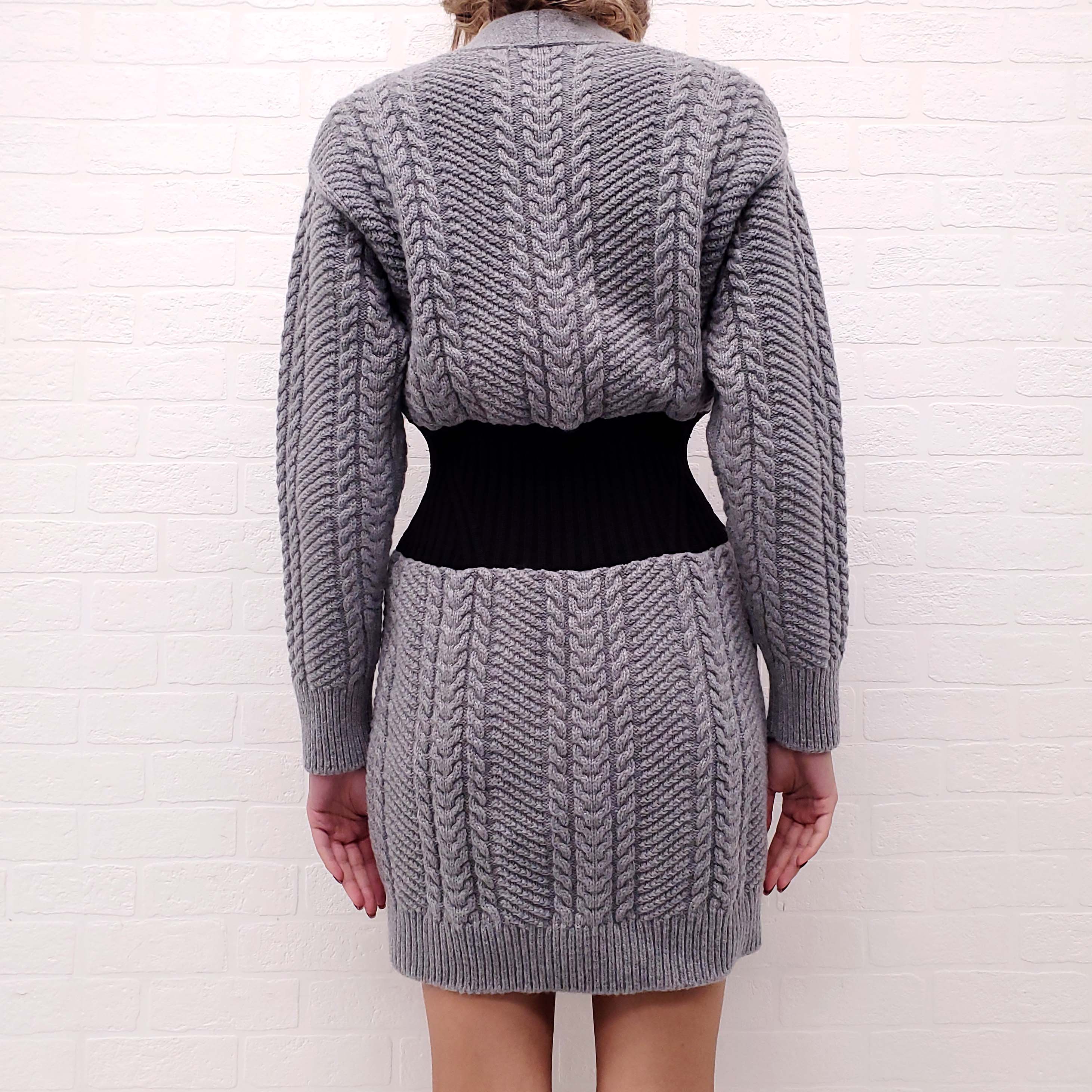 ALEXANDER MCQUEEN GREY AND BLACK CABLE KNIT DRESS - SIZE S