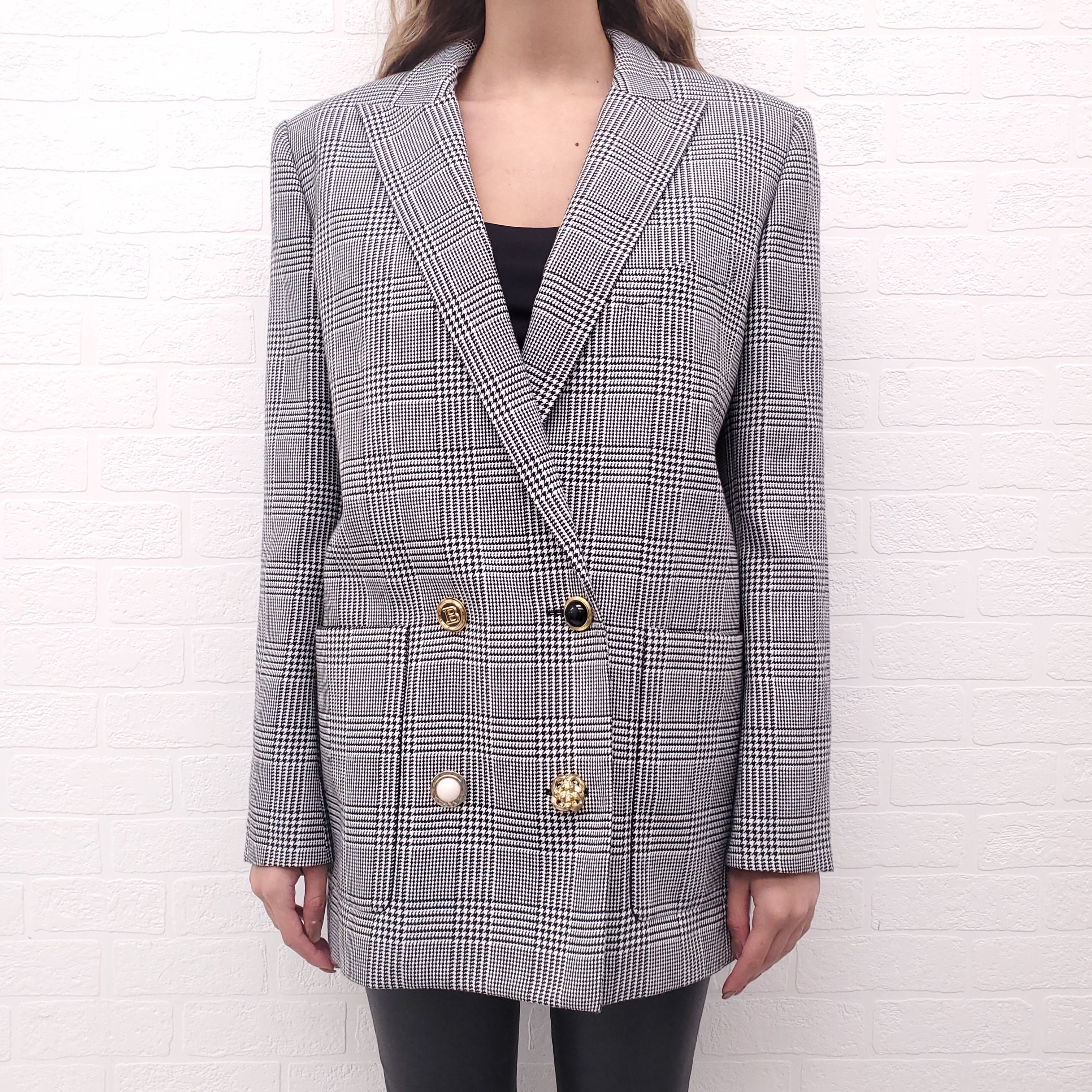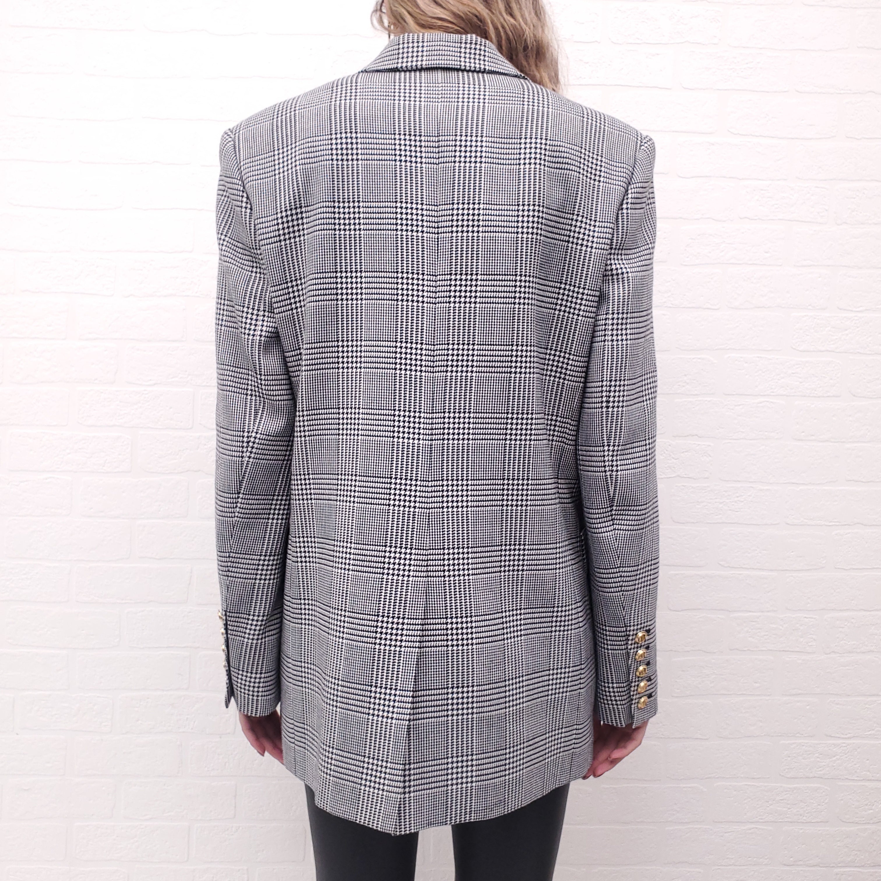 BALMAIN HOUNDSTOOTH DOUBLE BREASTED BLAZER WITH MISMATCHED BUTTONS - SIZE 38