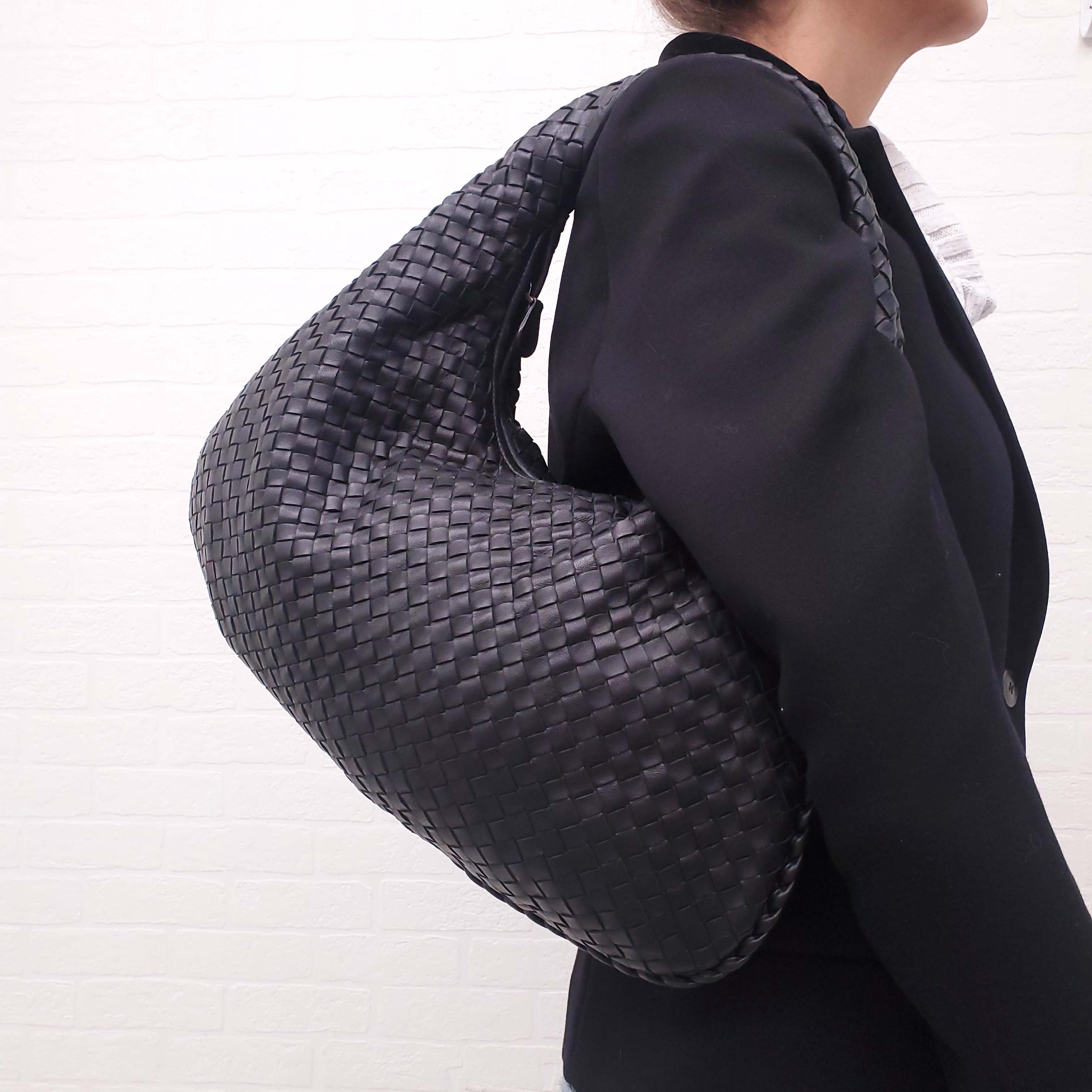BOTTEGA VENETA BLACK LARGE INTRECATTIO BAG