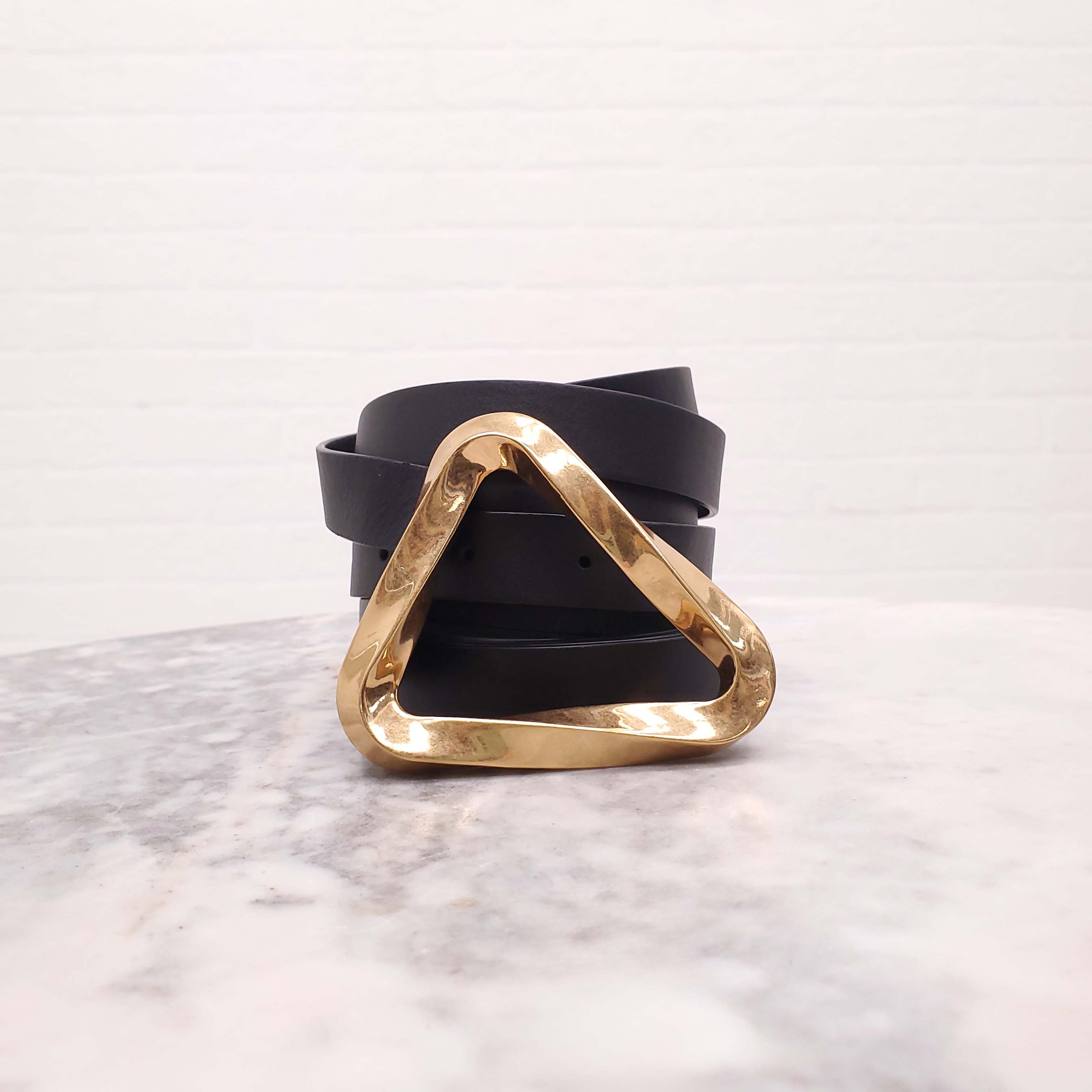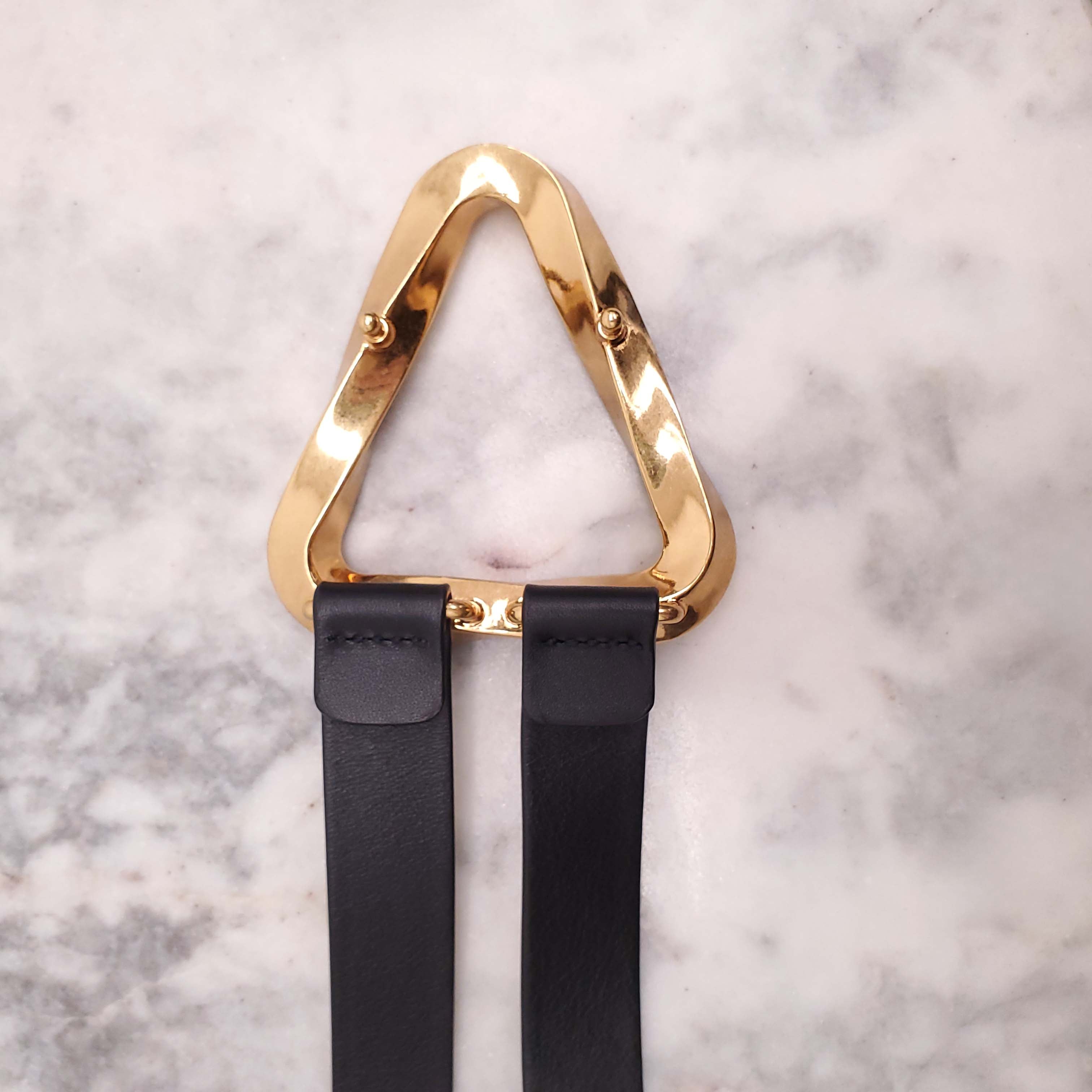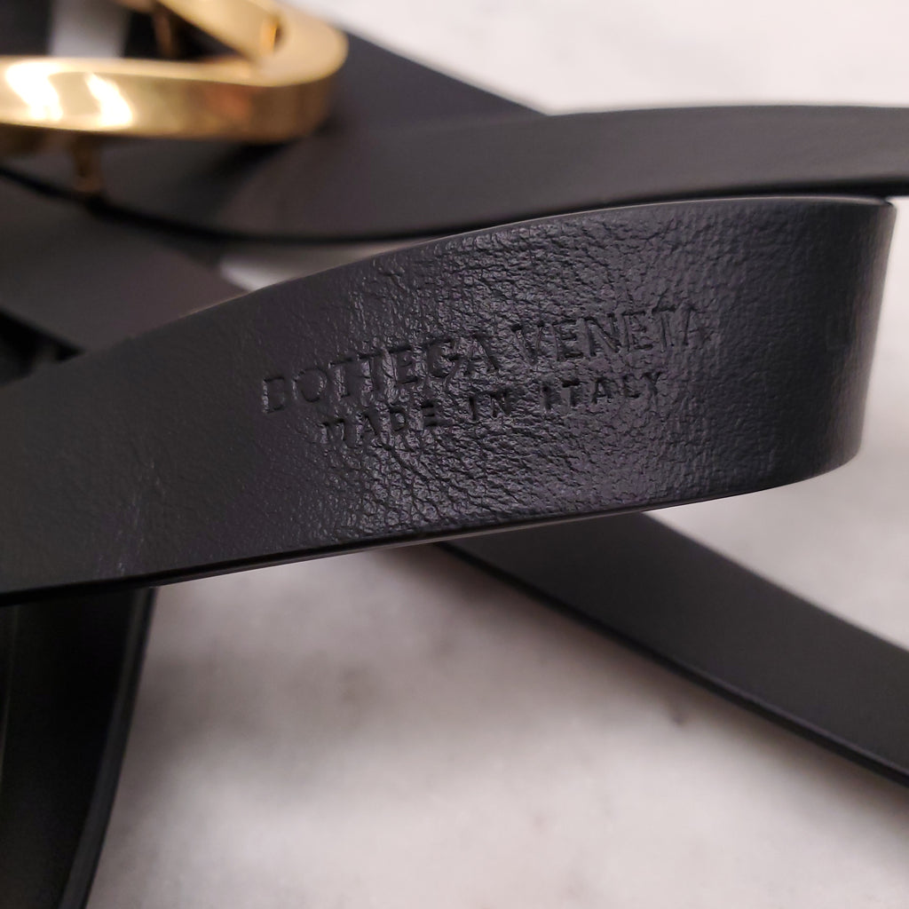 BOTTEGA VENETA BLACK LEATHER 'GRASP' BELT WITH GOLD EMBLEM - SIZE M