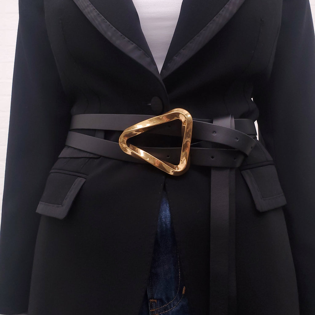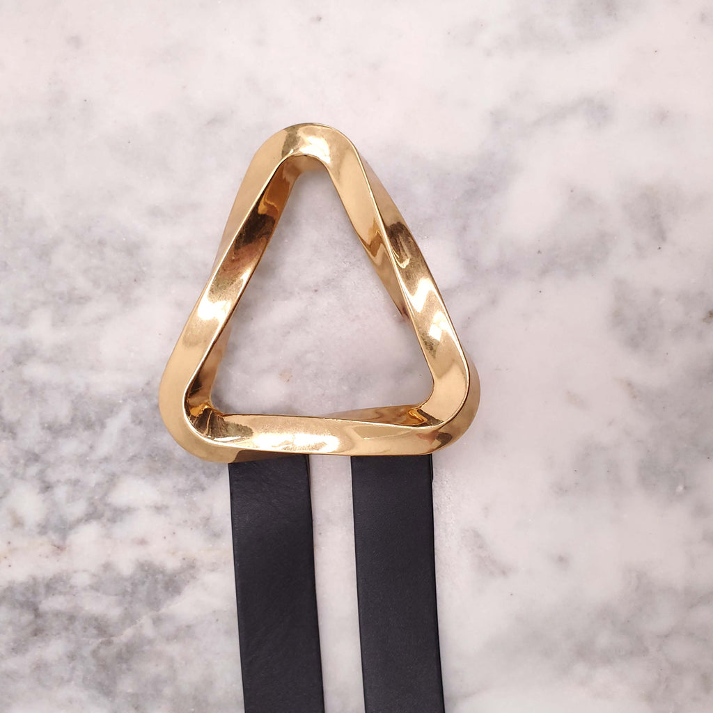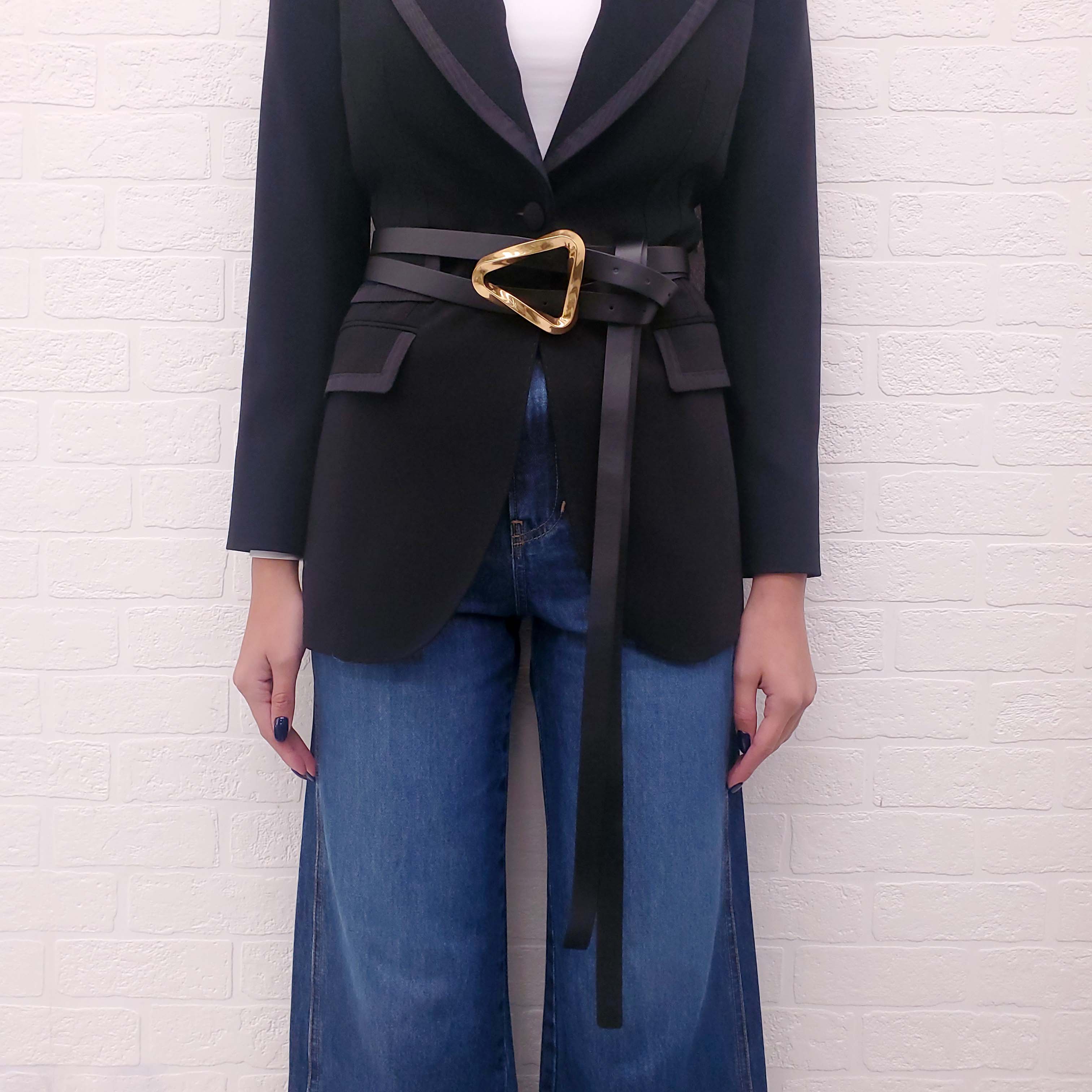 BOTTEGA VENETA BLACK LEATHER 'GRASP' BELT WITH GOLD EMBLEM - SIZE M