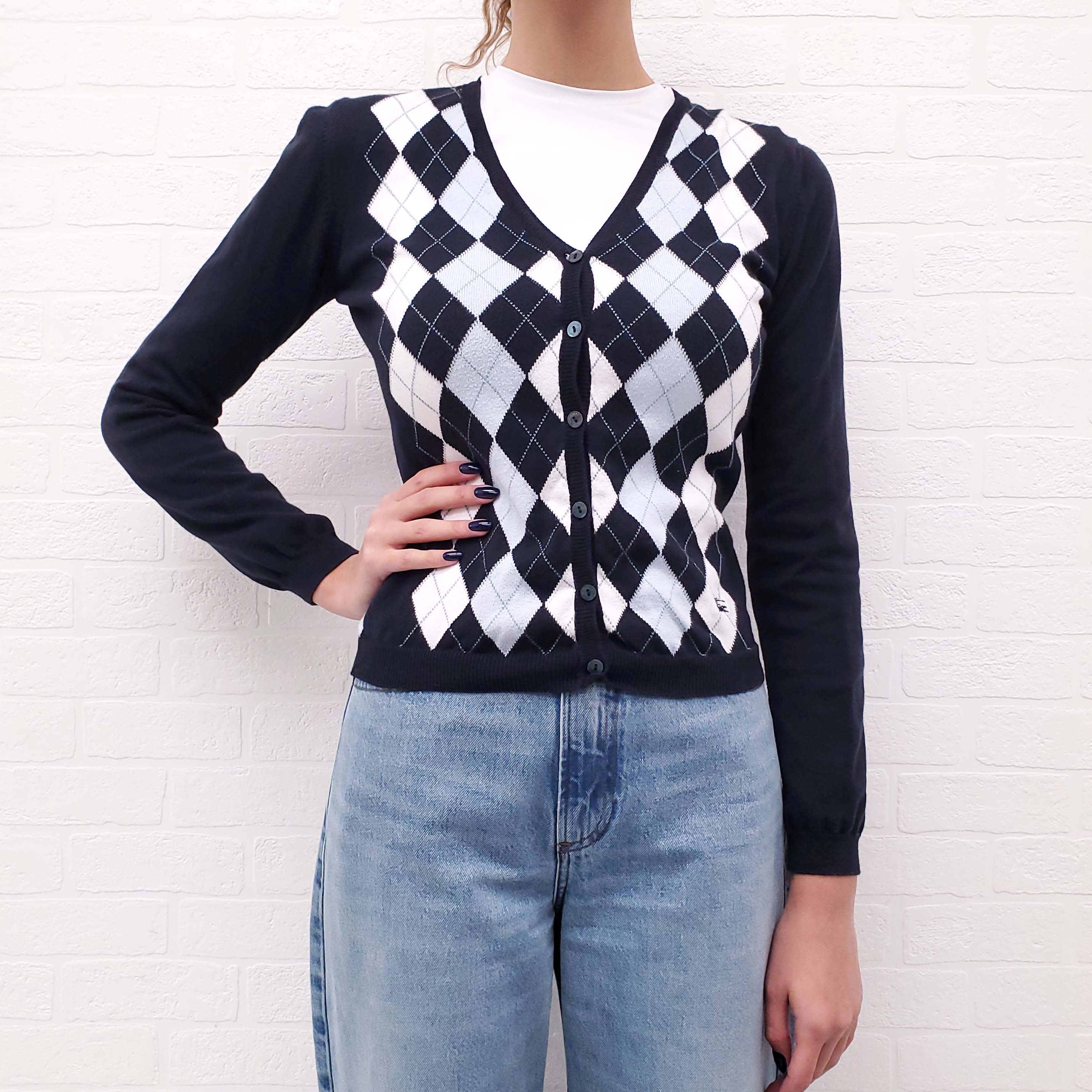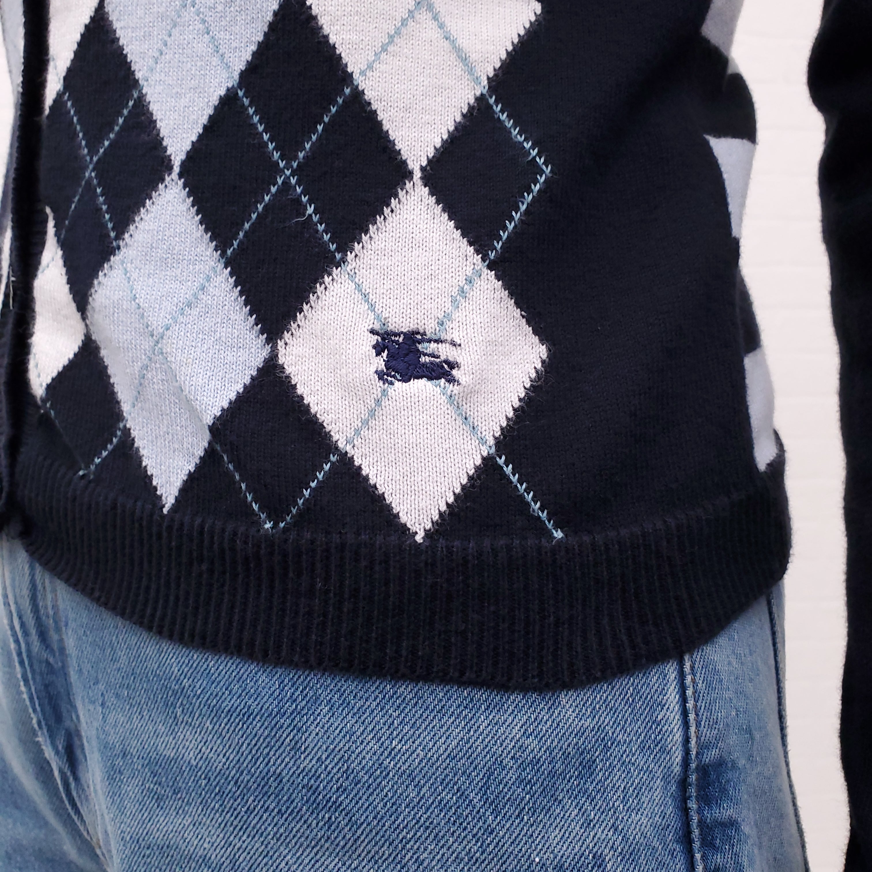 BURBERRY NAVY ARGYLE CARDIGAN - SIZE S