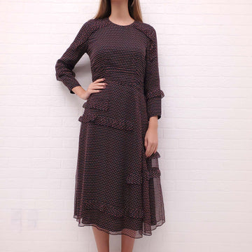 BURBERRY BLACK AND RED SILK POLKA DOT DRESS - SIZE 6