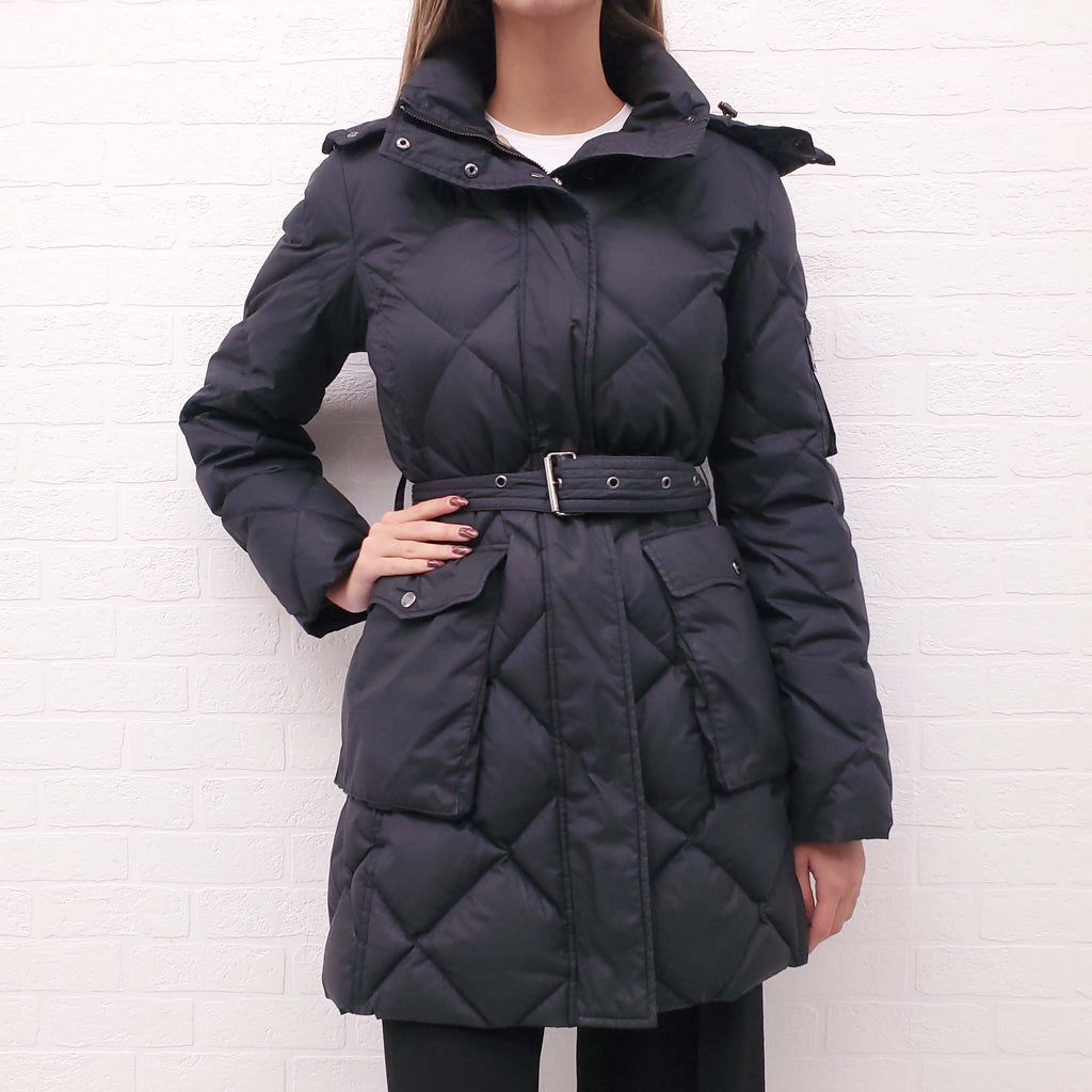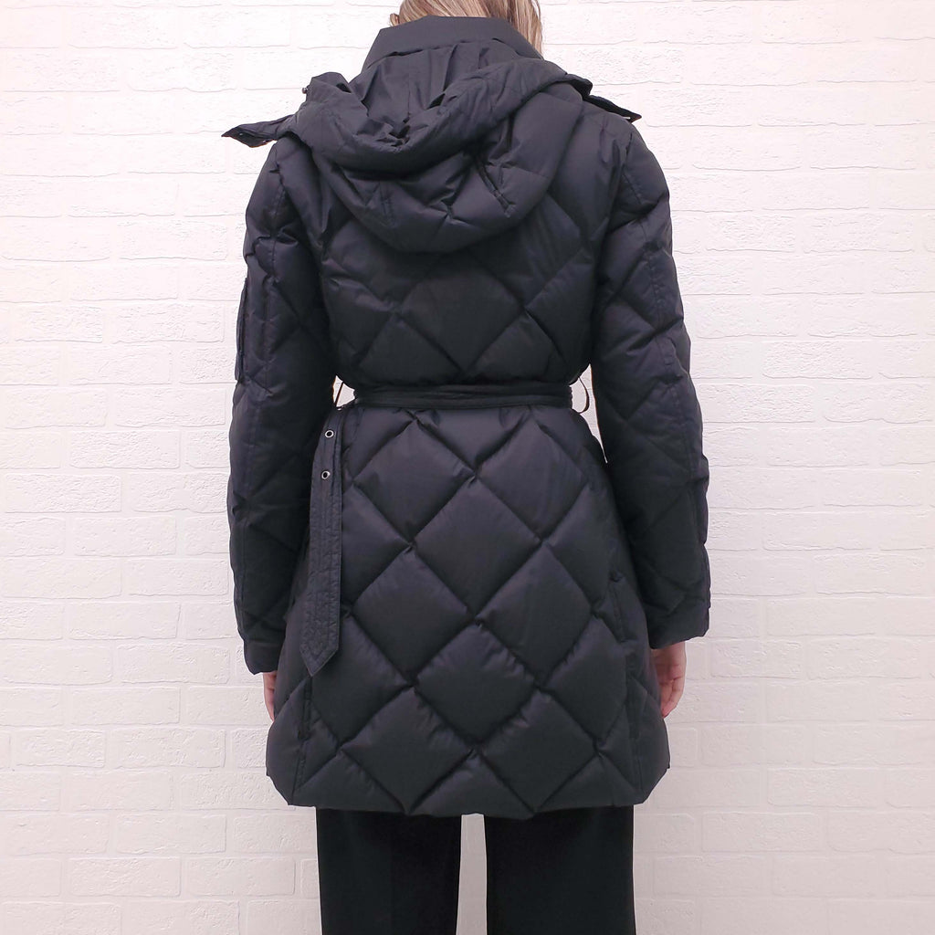 BURBERRY BLACK QUILTED PUFFER JACKET WITH CHECK INTERIOR AND BELT - SIZE S