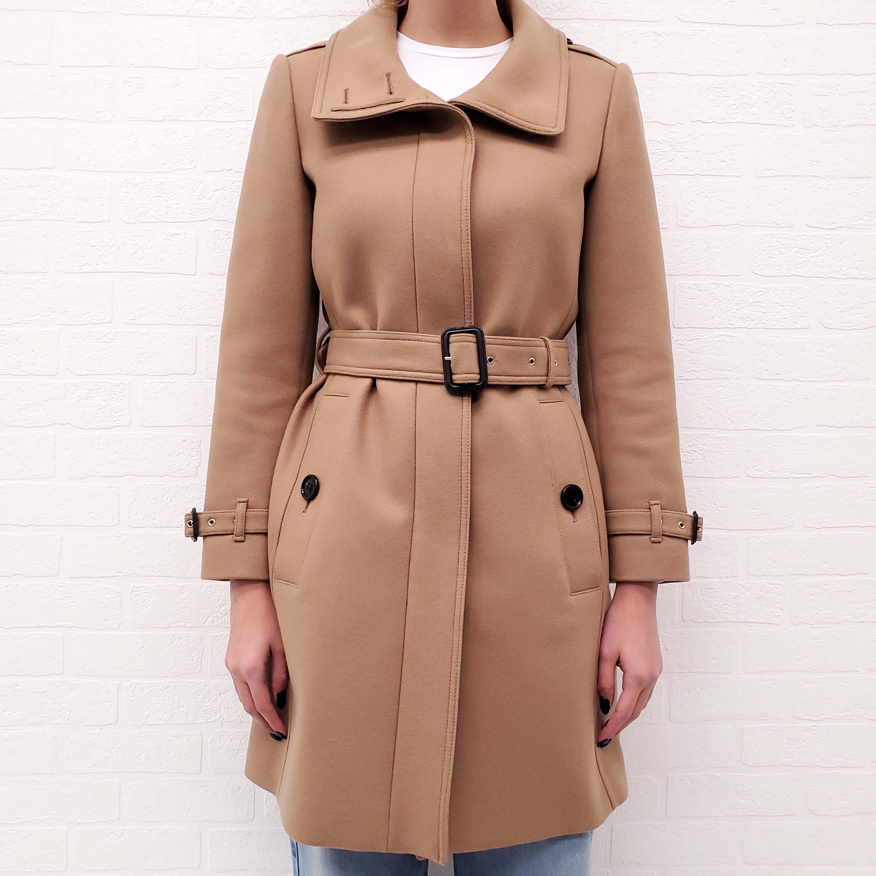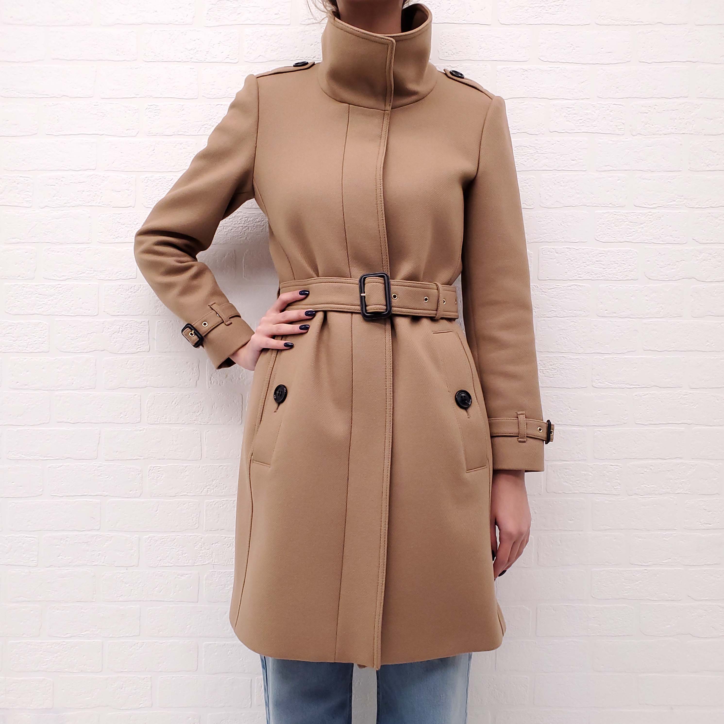 BURBERRY CAMEL WOOL TRENCH COAT - SIZE 8