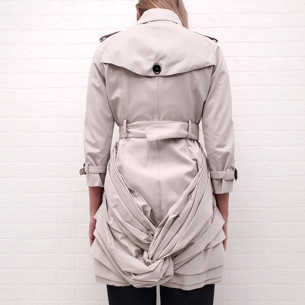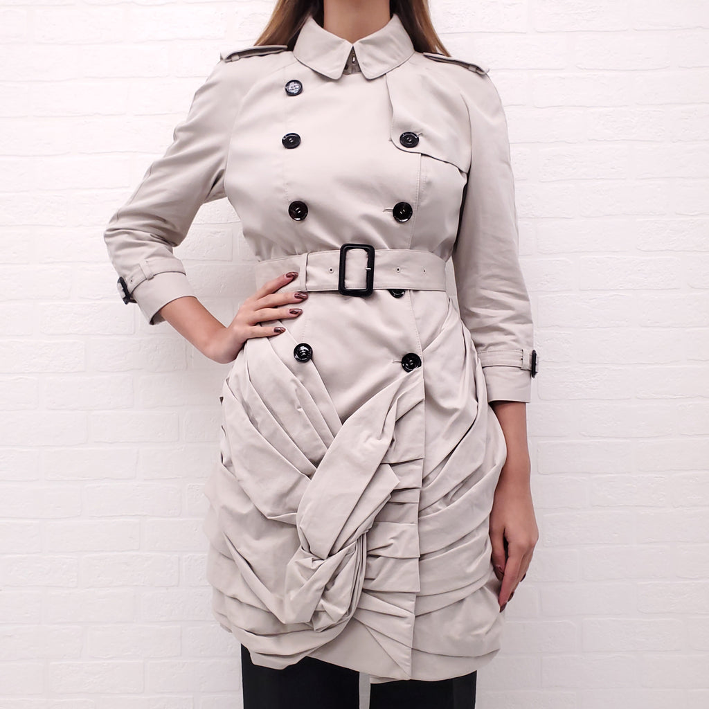 BURBERRY PROSUM BEIGE TRENCH COAT WITH ROUCHING DETAIL AND BELT - SIZE 42