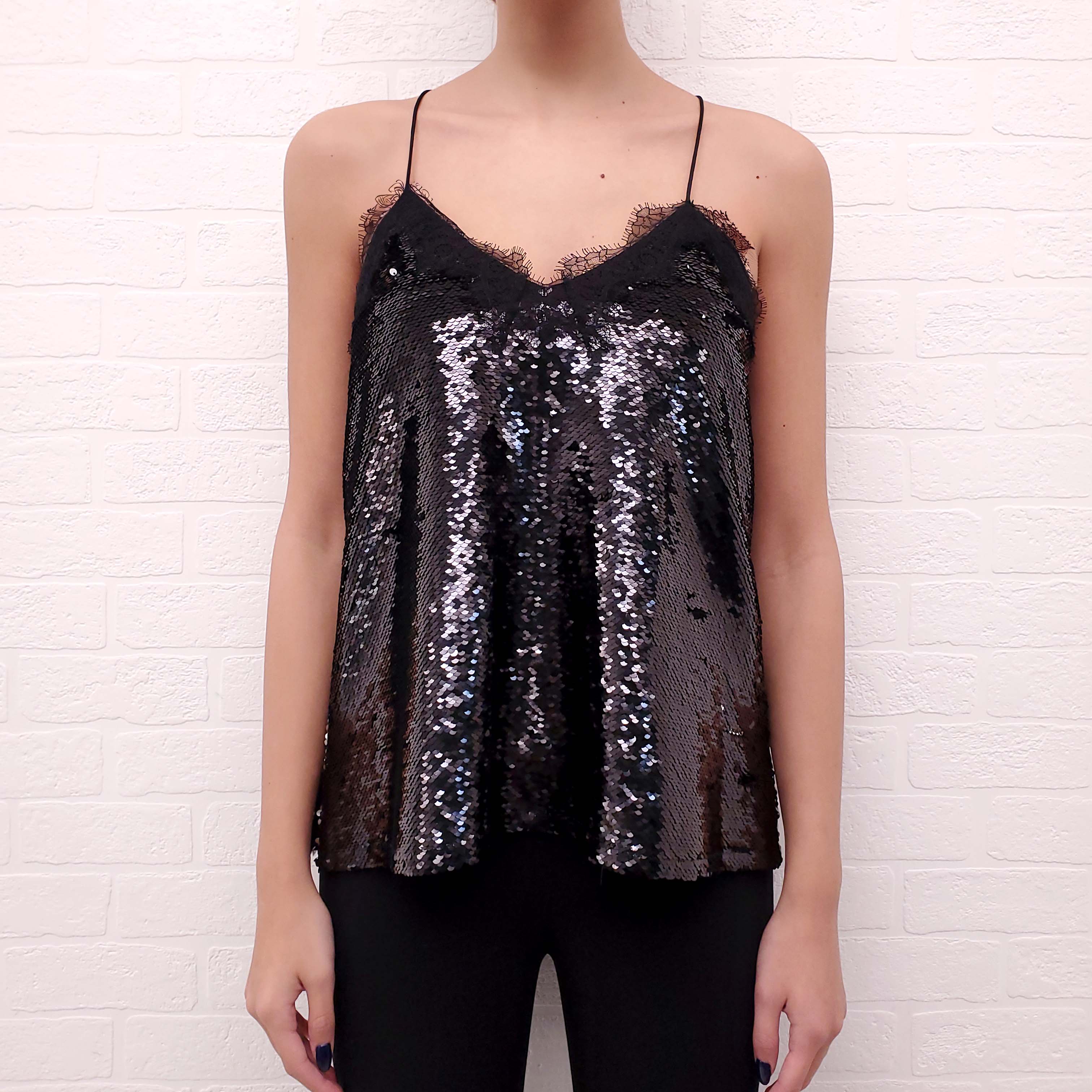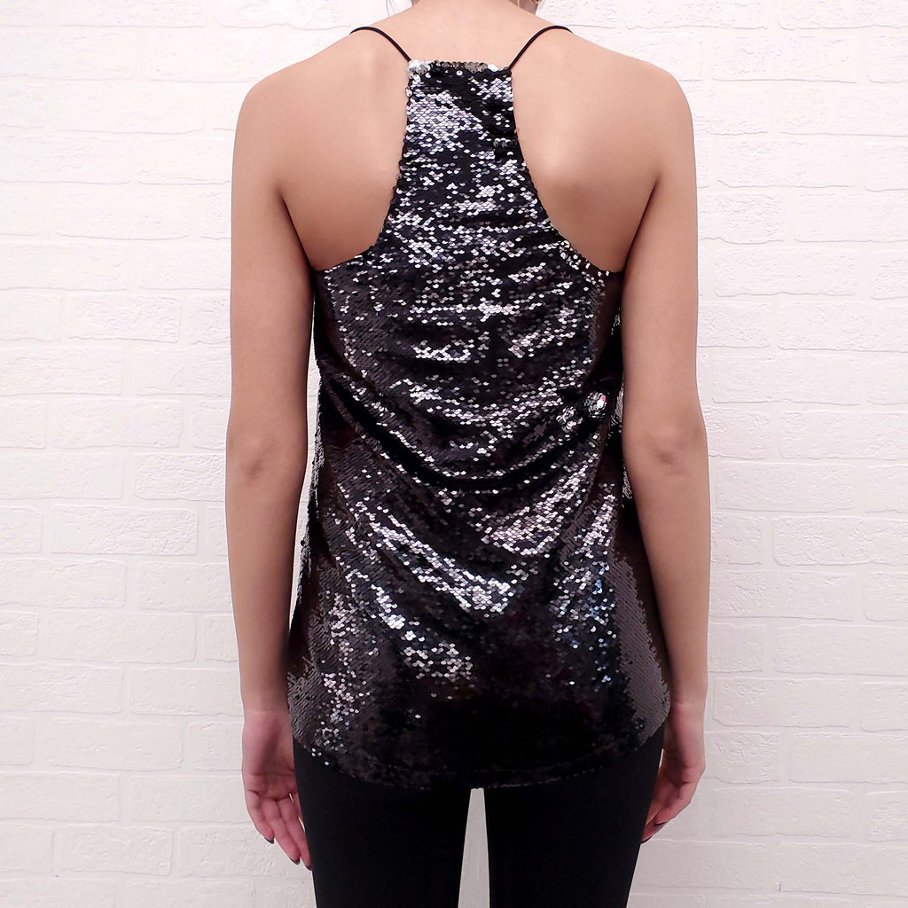CAMI NYC BLACK SEQUIN TANK TOP - SIZE S