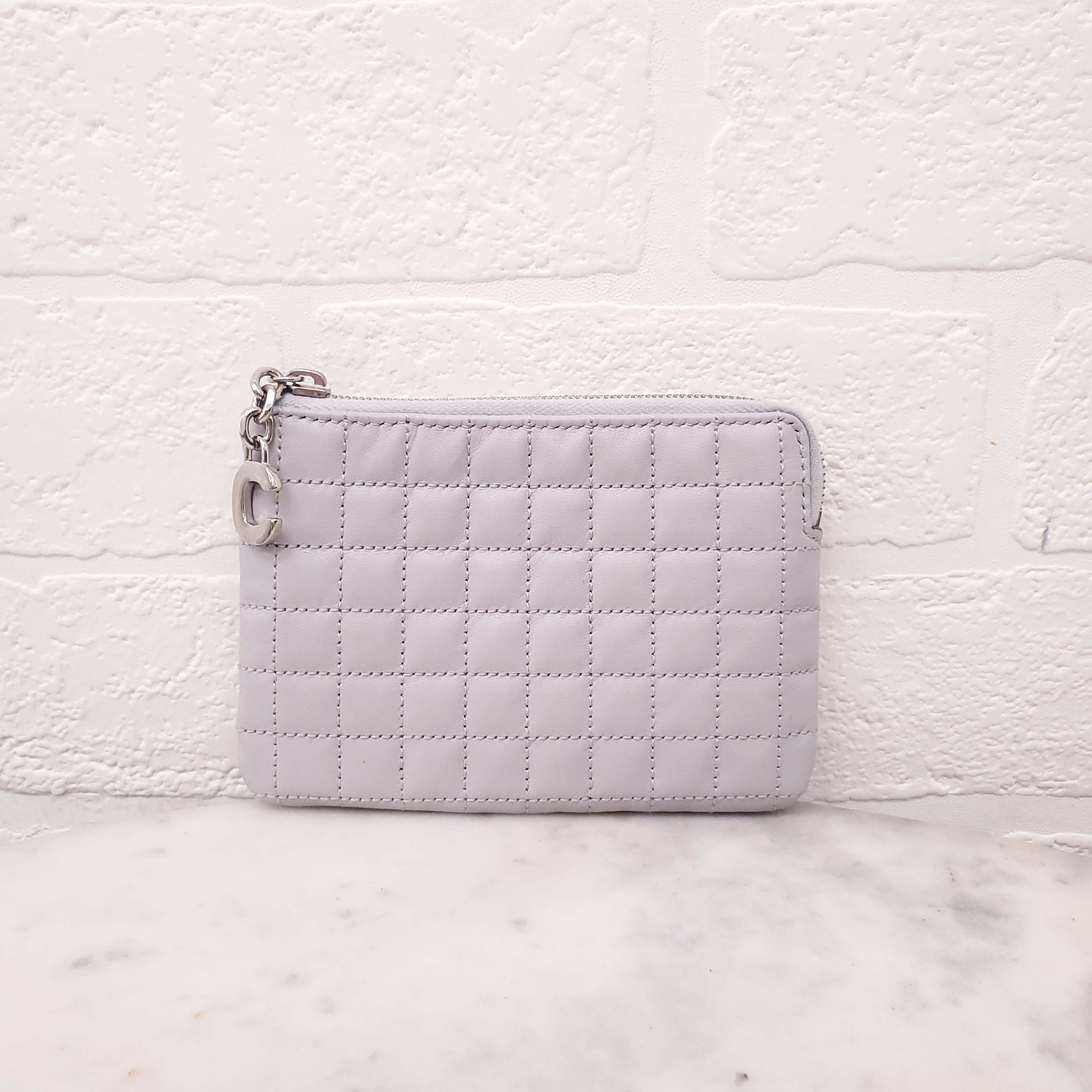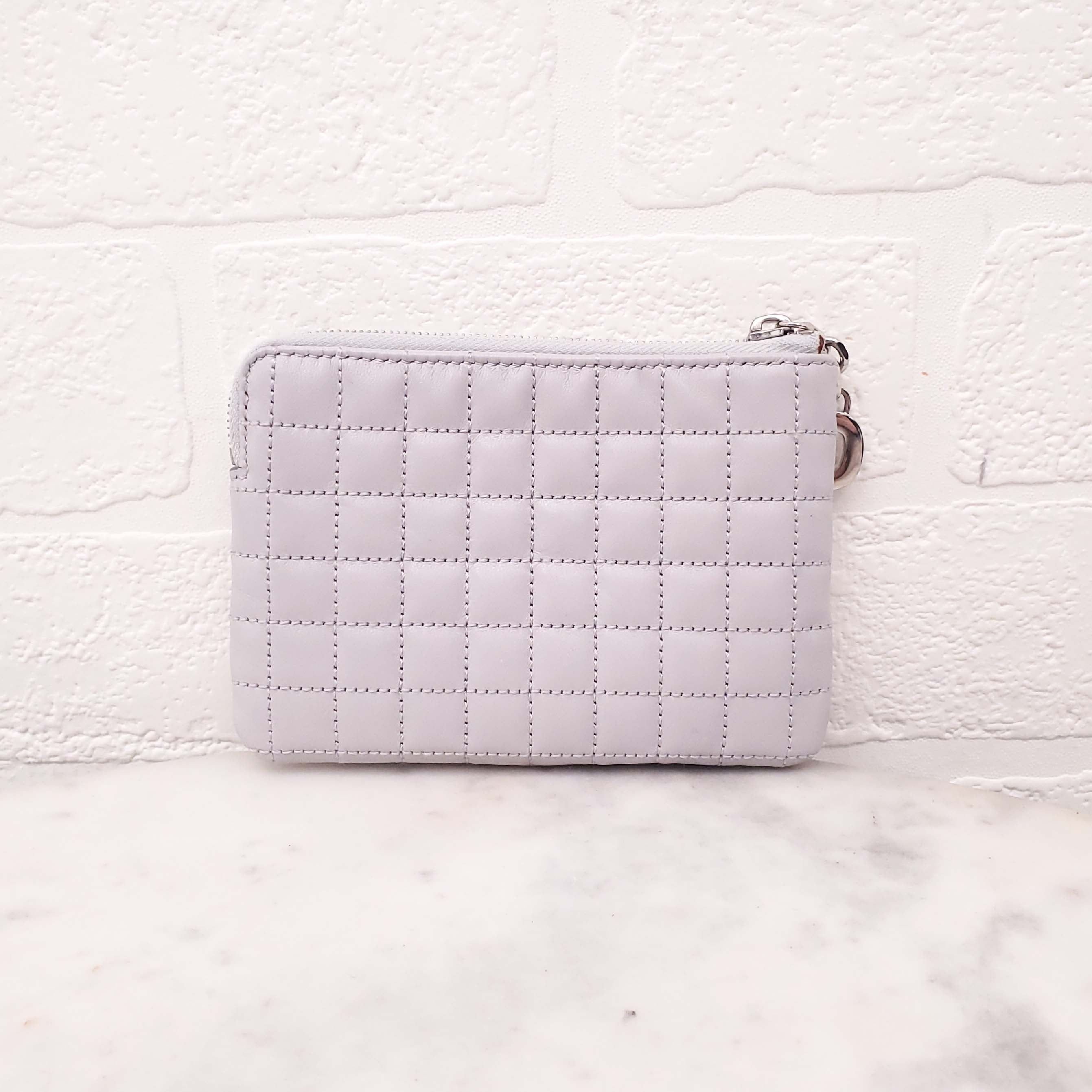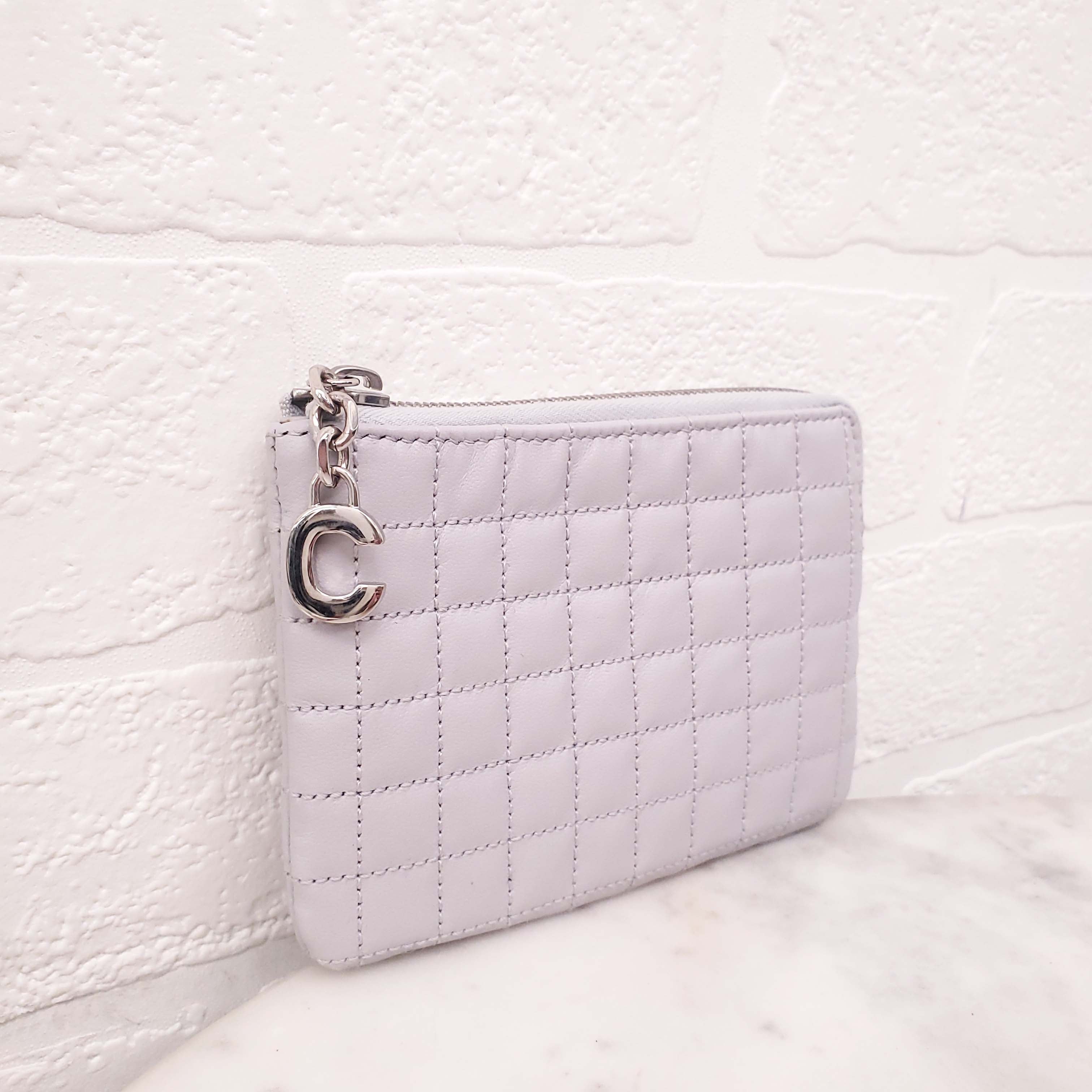 CELINE GREY QUILTED LEATHER COIN POUCH