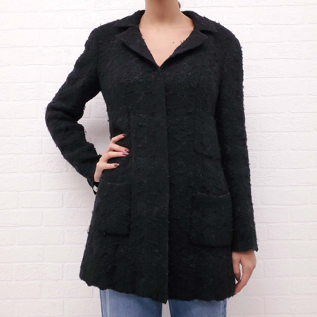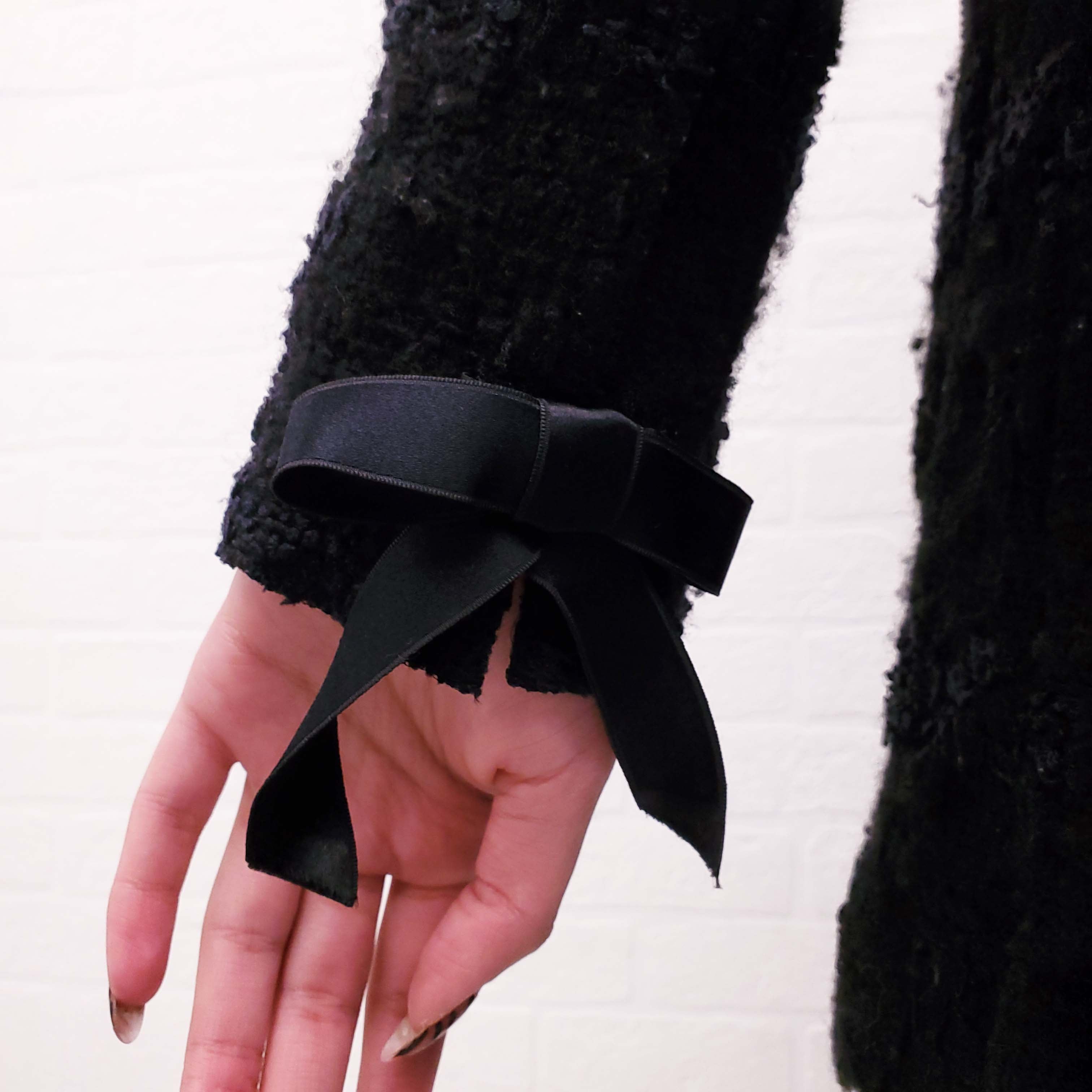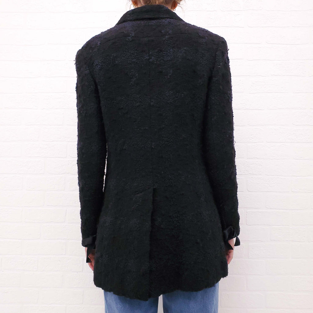 CHANEL BLACK AND NAVY TWEED JACKET WITH BOW DETAIL - SIZE 40