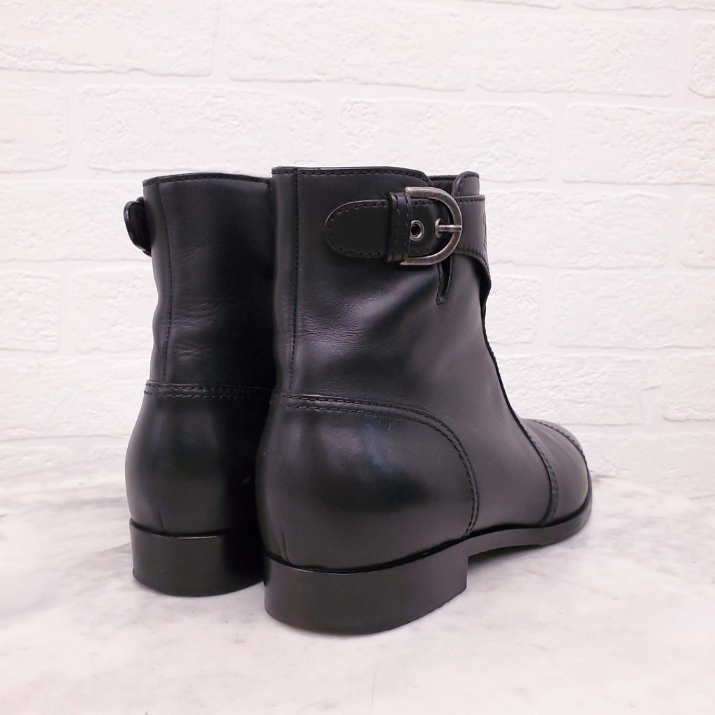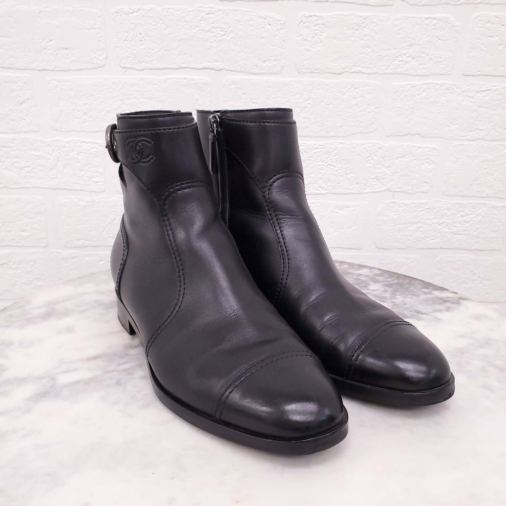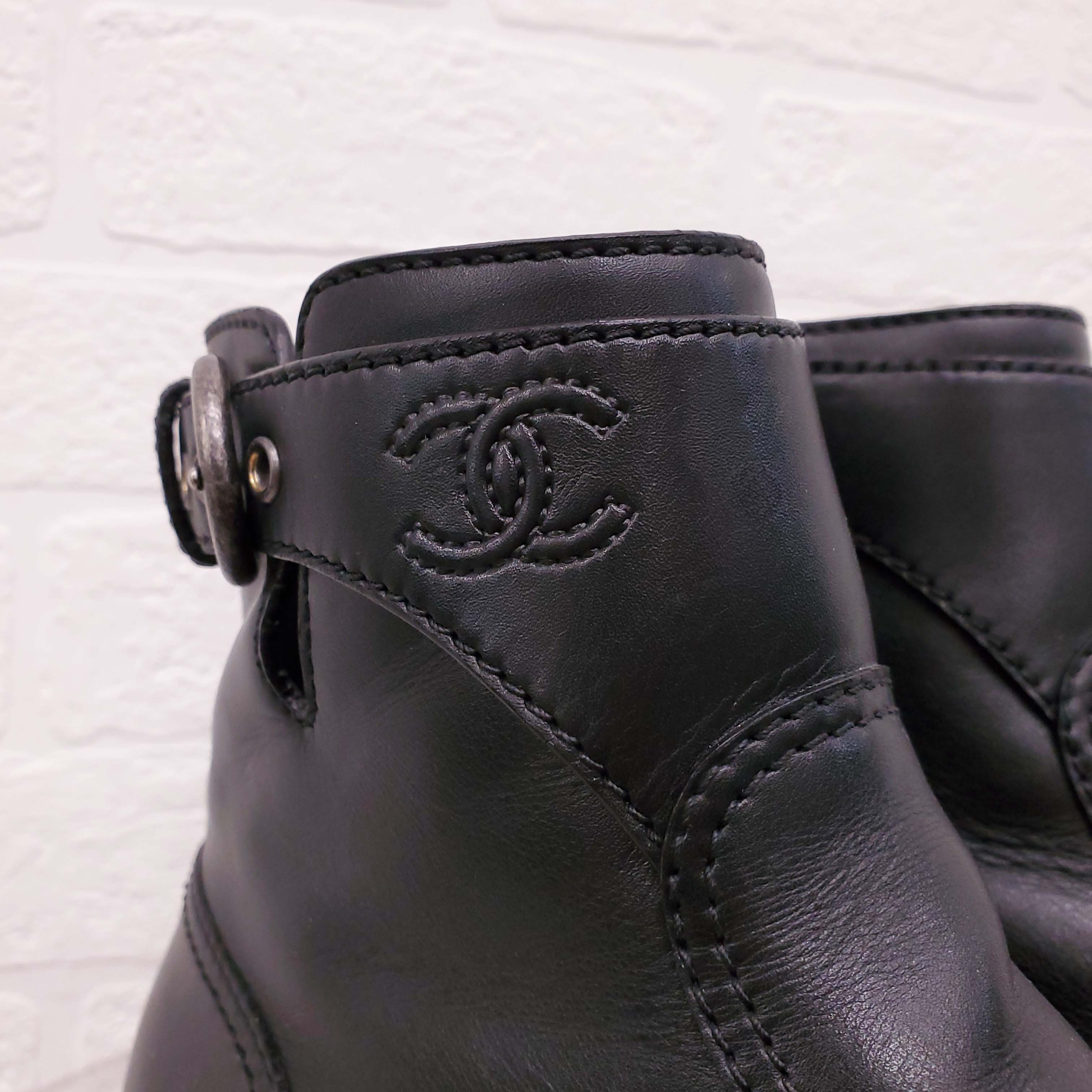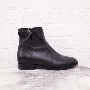 CHANEL BLACK ANKLE BOOTS WITH BUCKLE AND LOGO DETAIL - SIZE 38.5