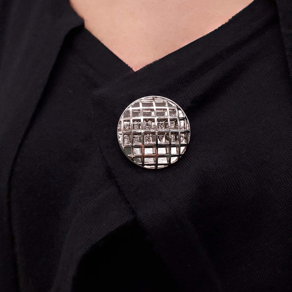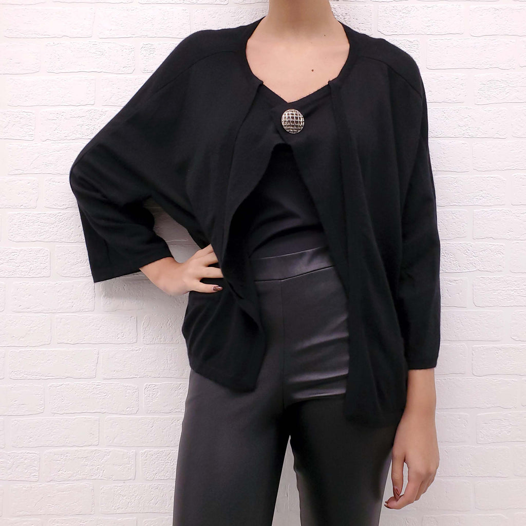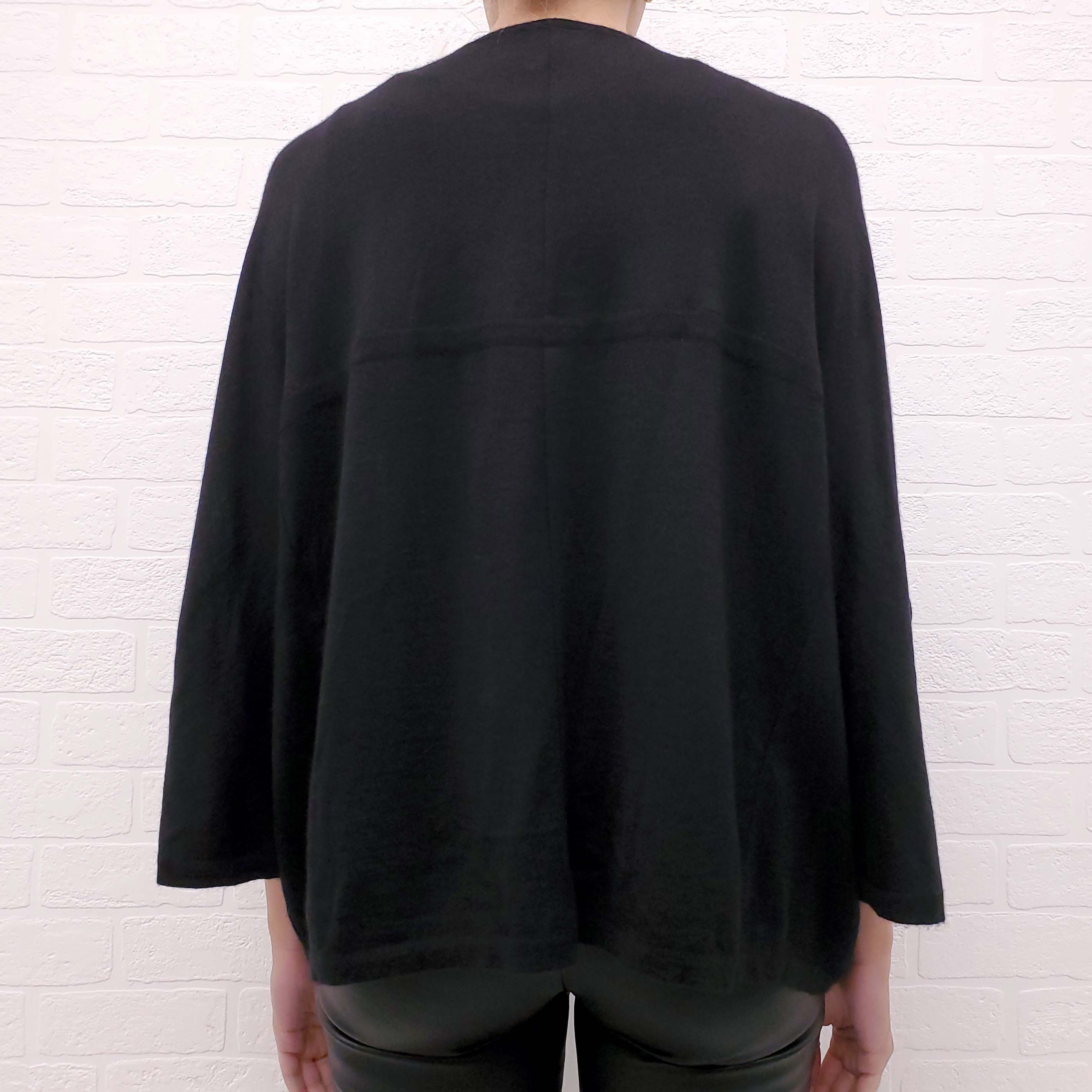 CHANEL BLACK CASHMERE AND SILK CARDIGAN WITH LARGE LOGO BUTTON - SIZE 42