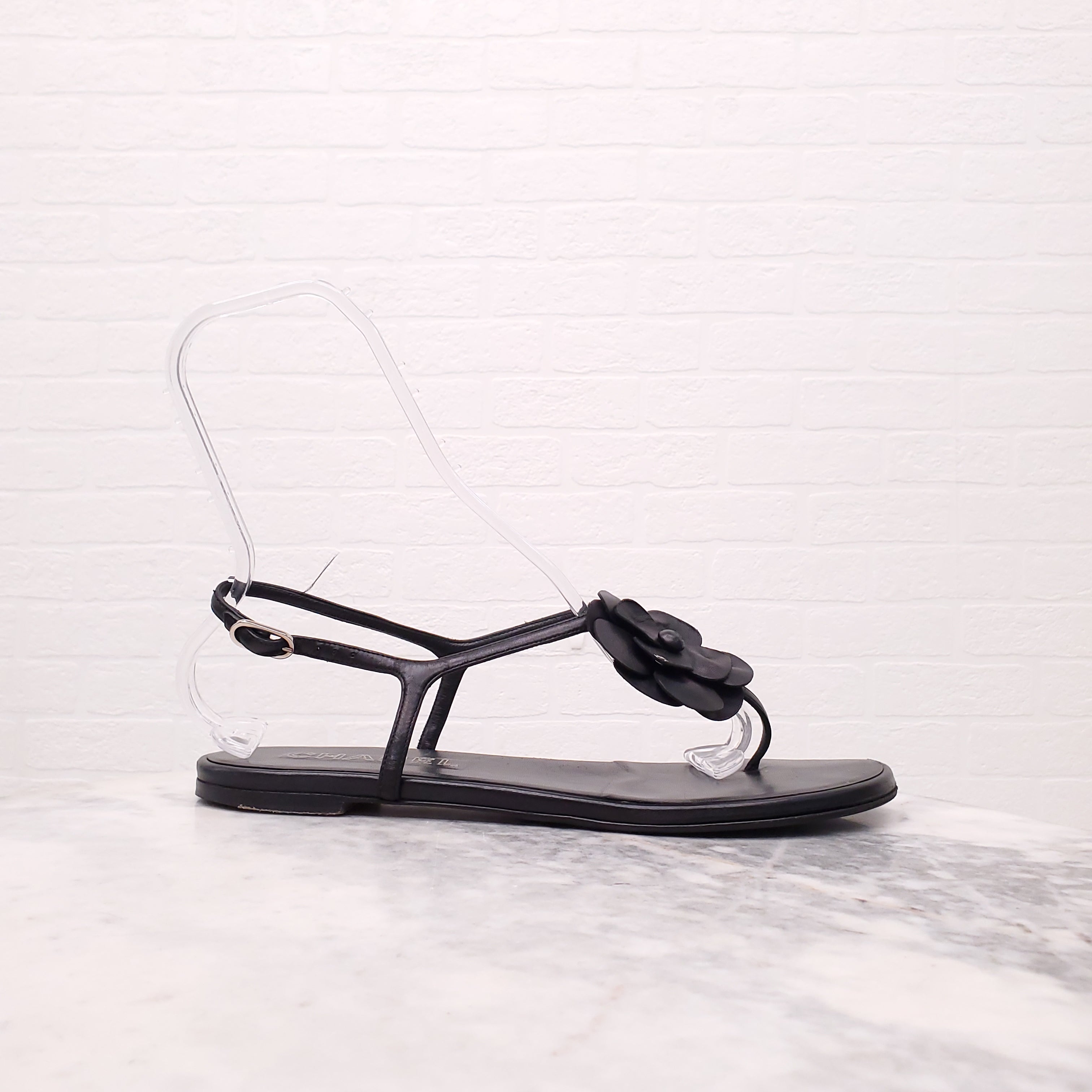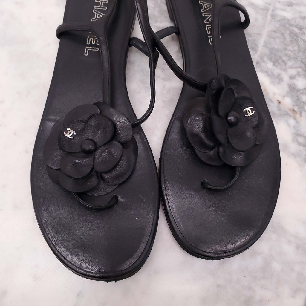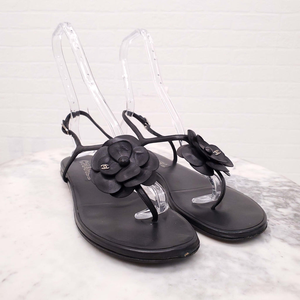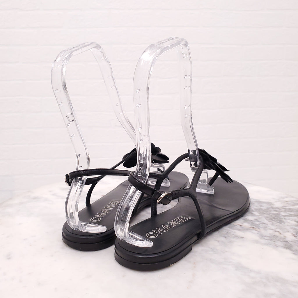 CHANEL BLACK FLORAL SANDALS - SIZE 42C