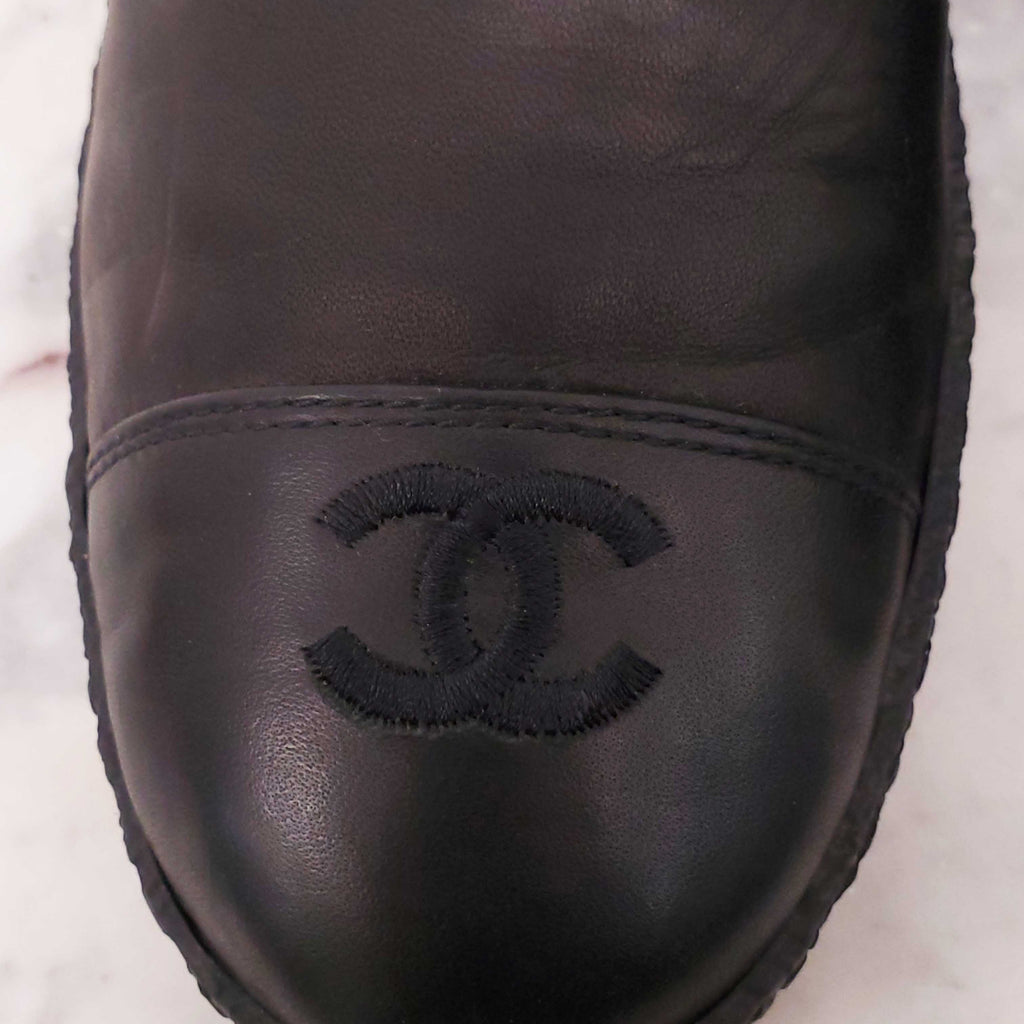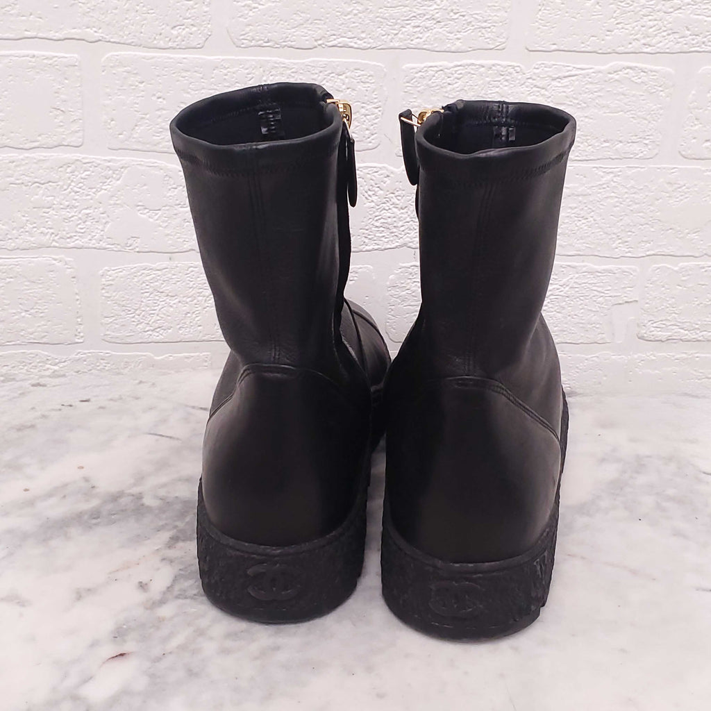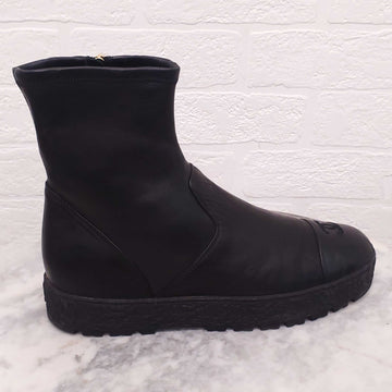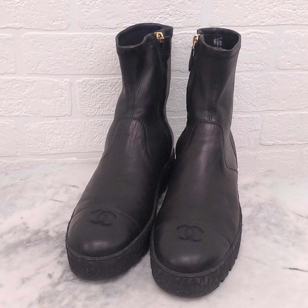 CHANEL BLACK LEATHER ANKLE BOOTS WITH LOGO - SIZE 40C