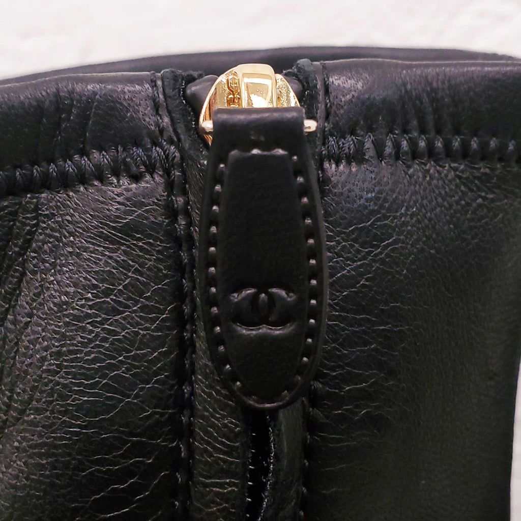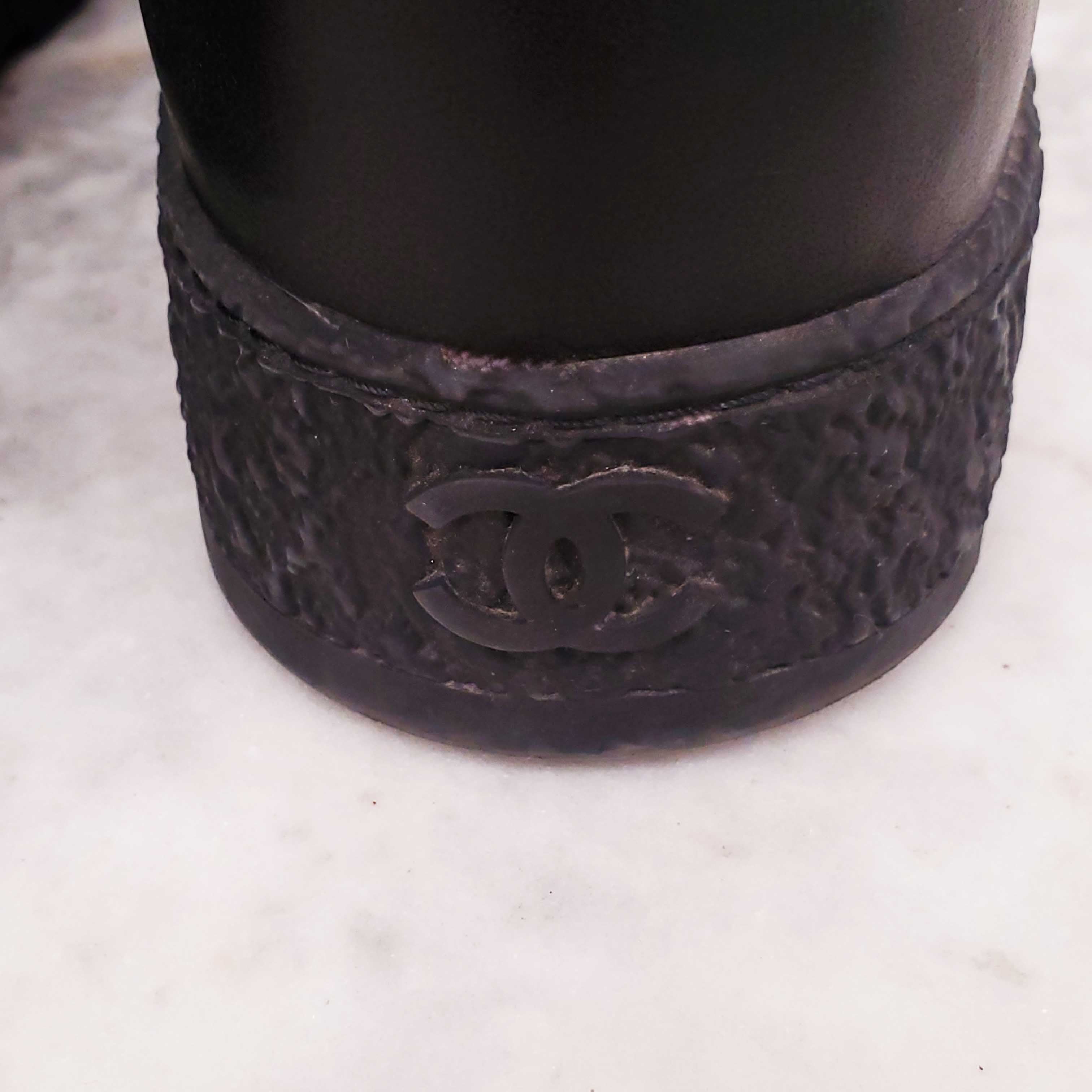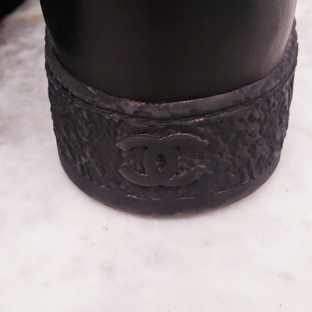 CHANEL BLACK LEATHER ANKLE BOOTS WITH LOGO - SIZE 40C