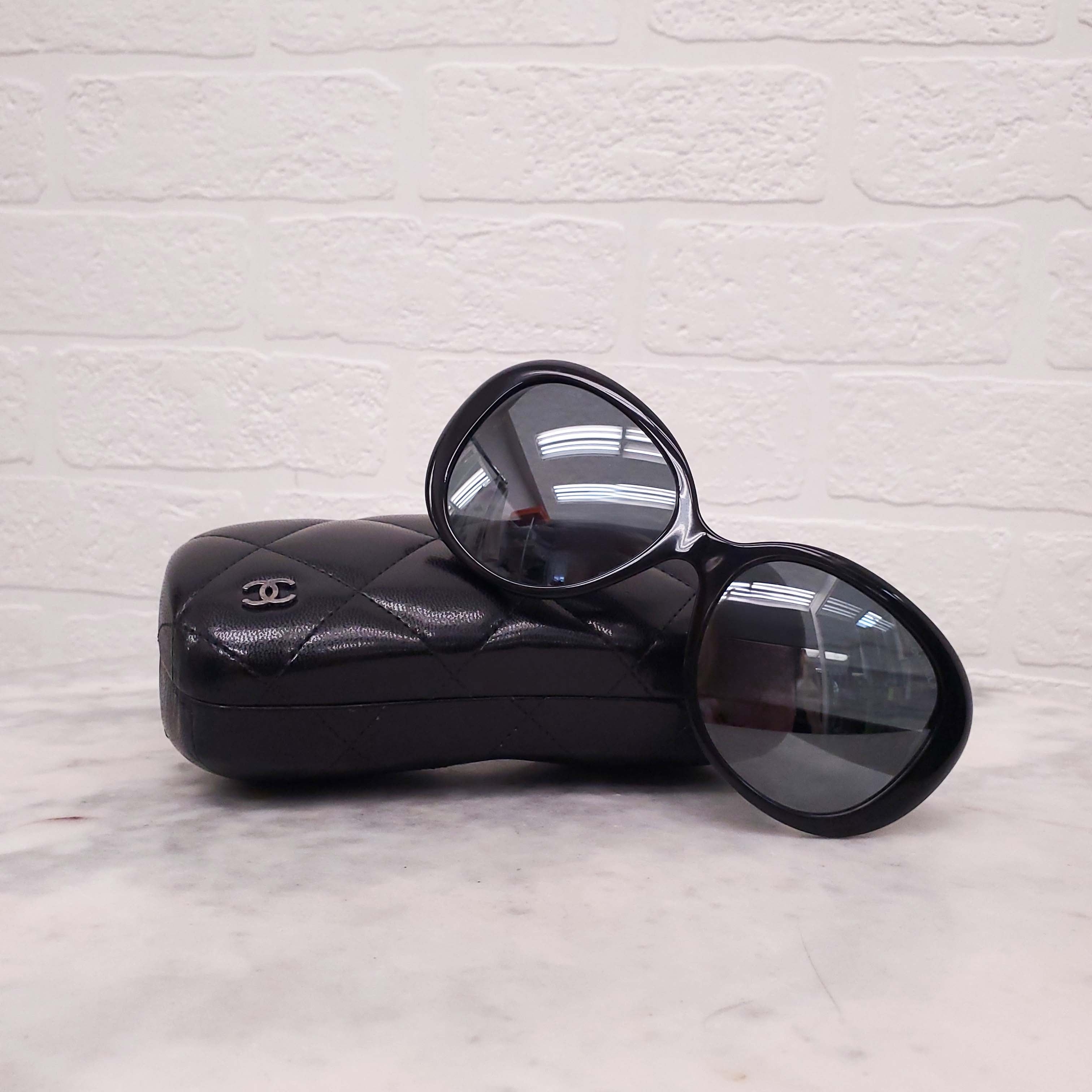 CHANEL BLACK ROUND SUNGLASSES WITH REFLECTIVE LENSES