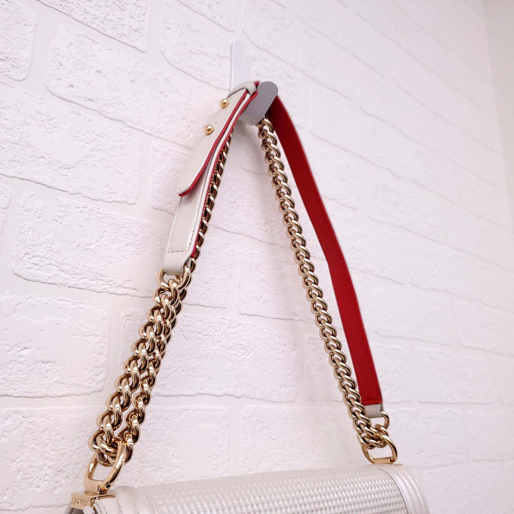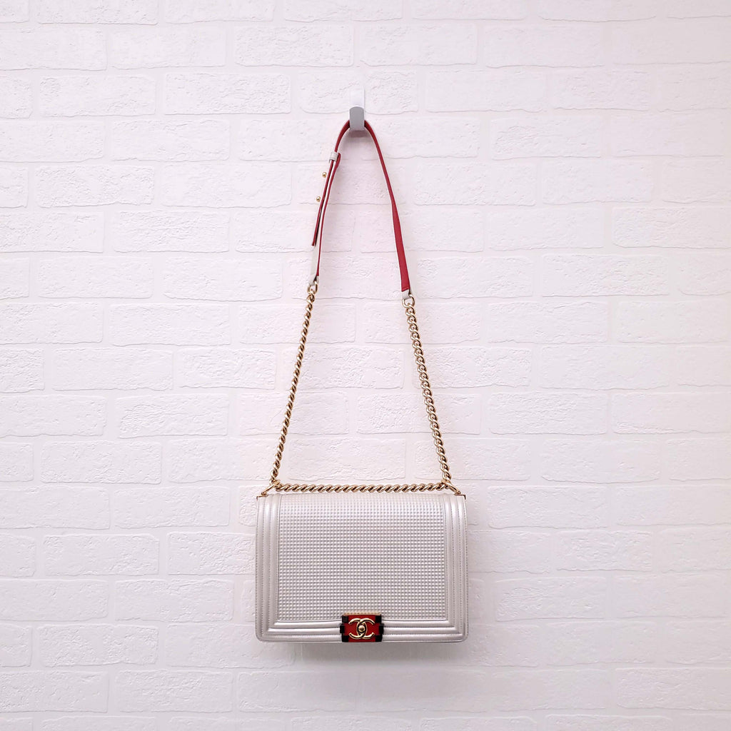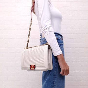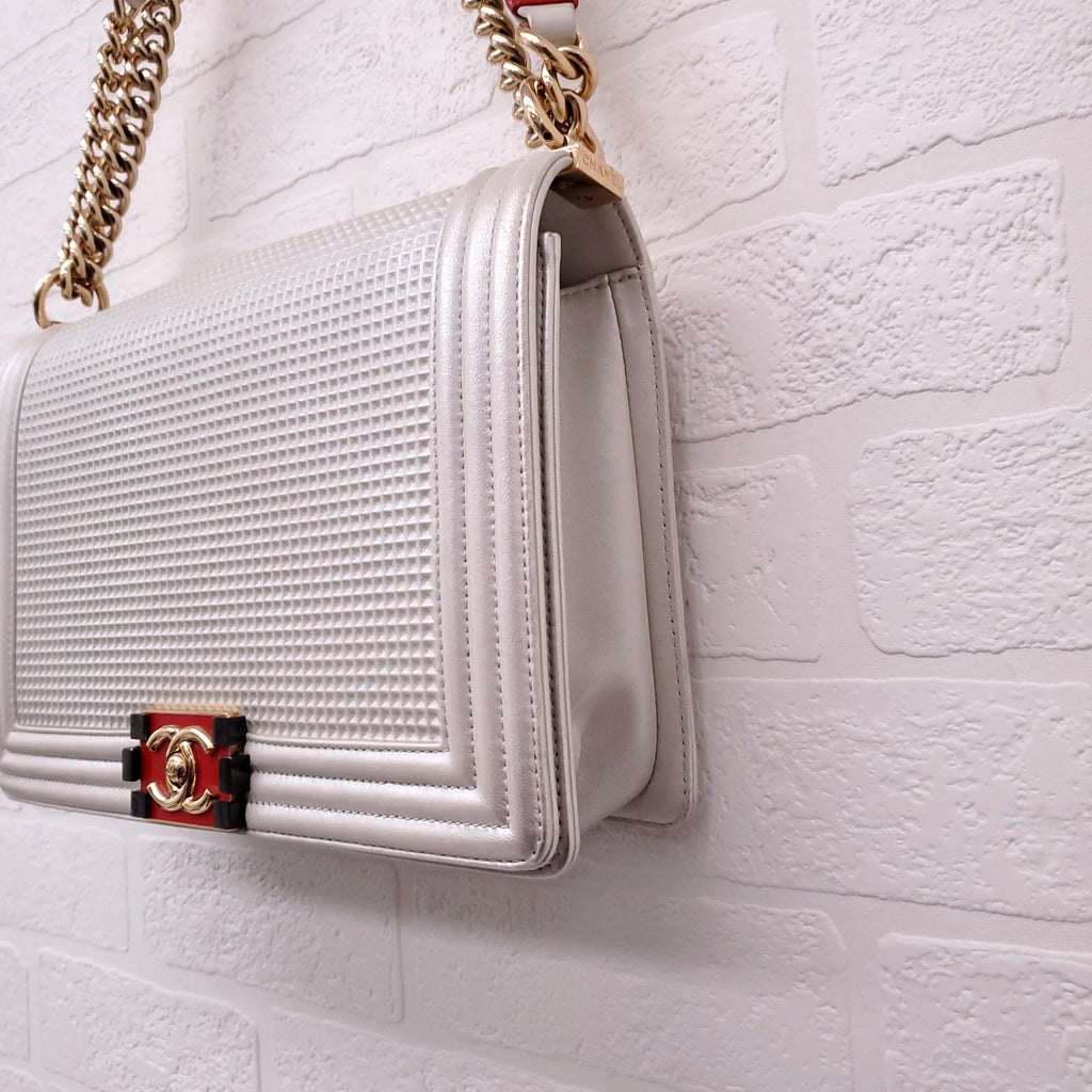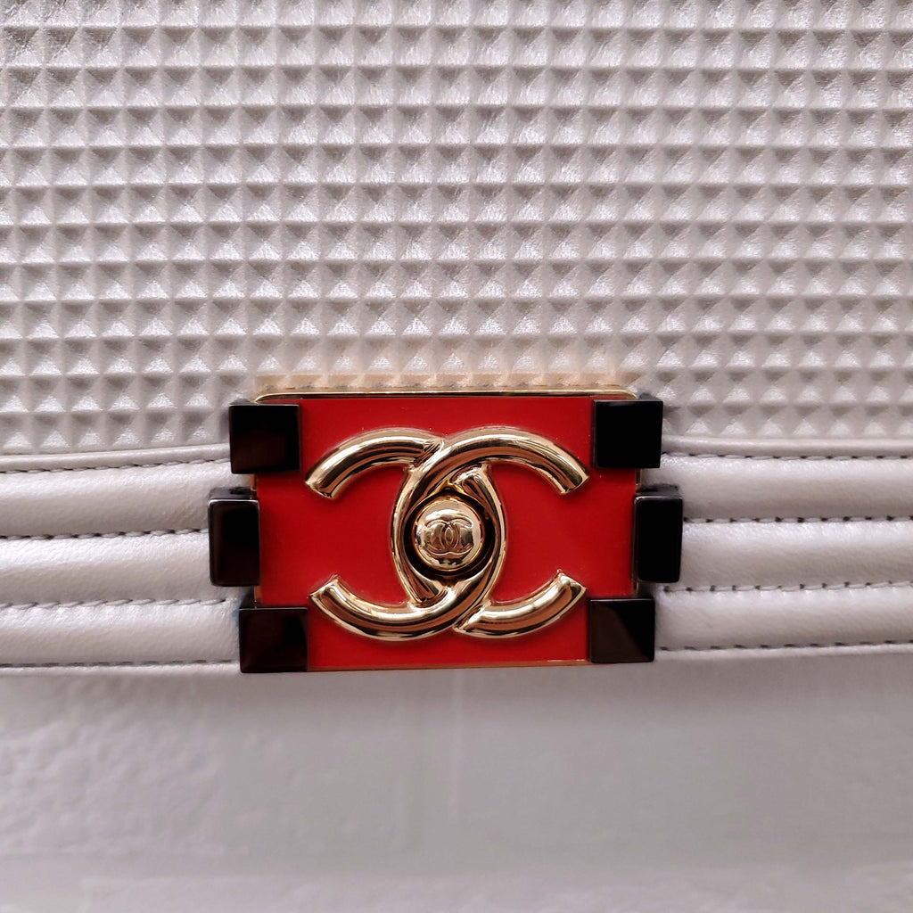CHANEL CREAM AND RED CUBE BOY JUMBO FLAP BAG