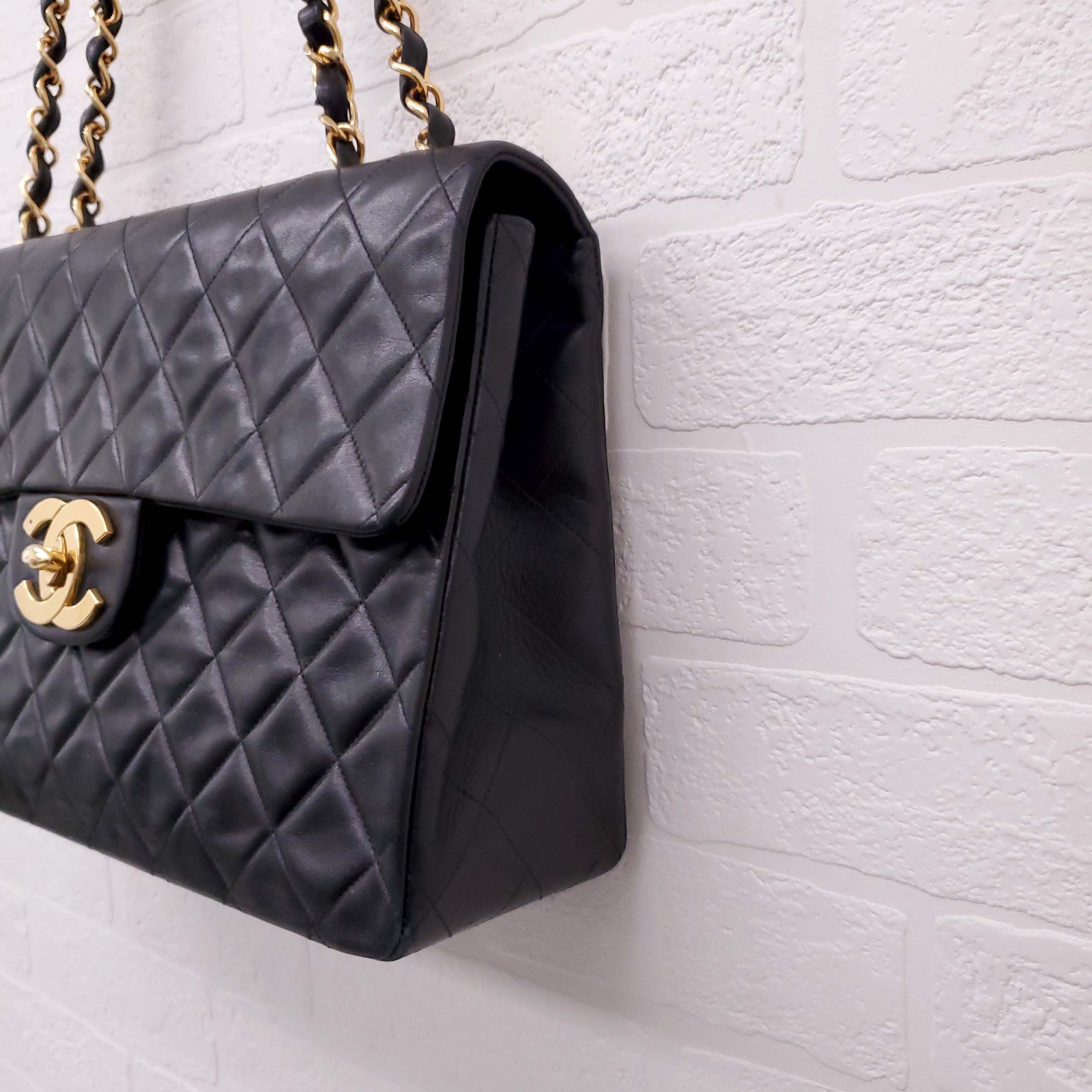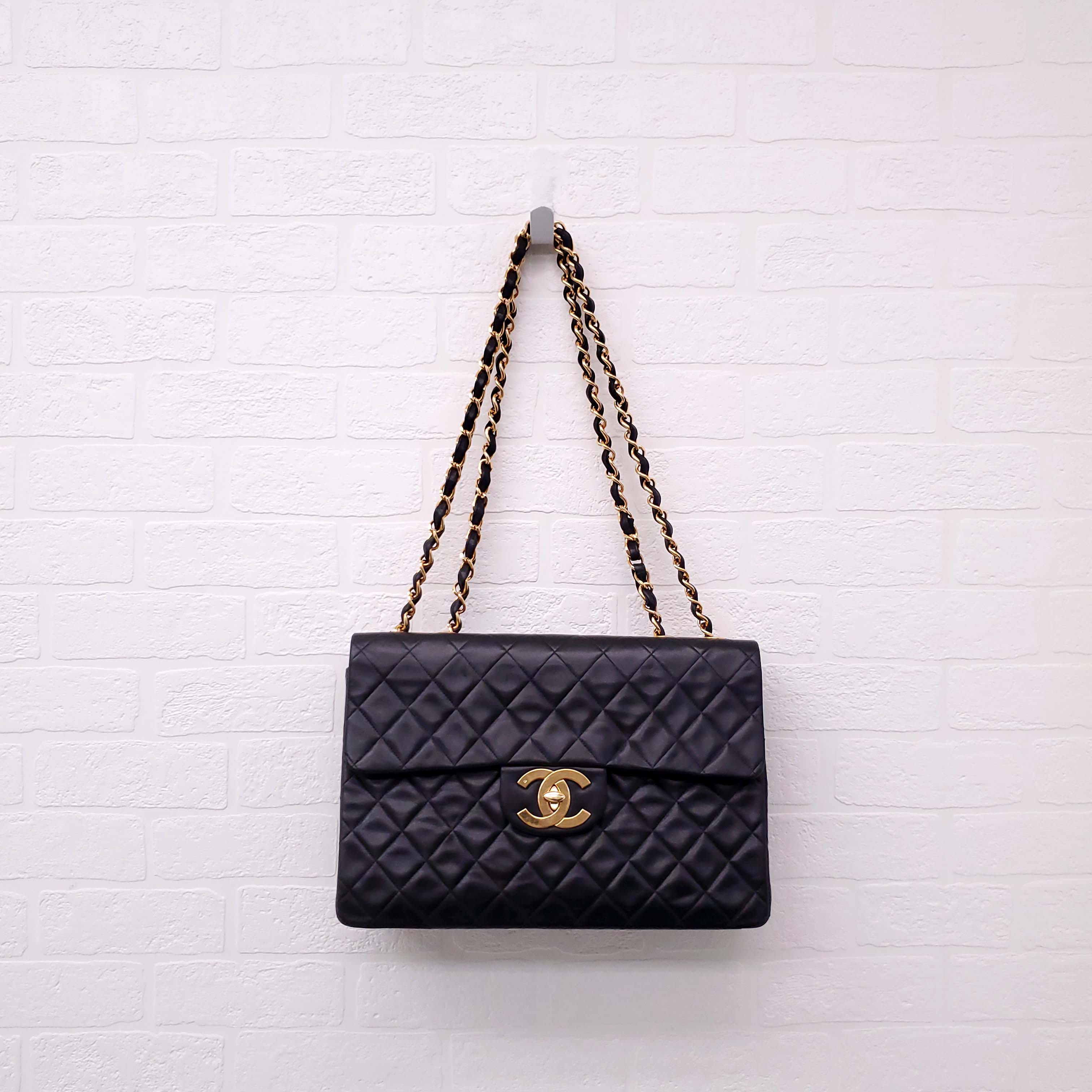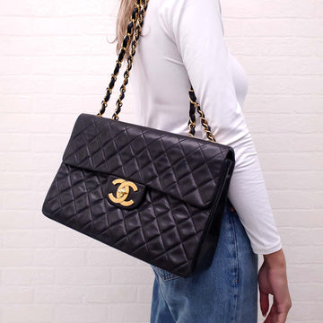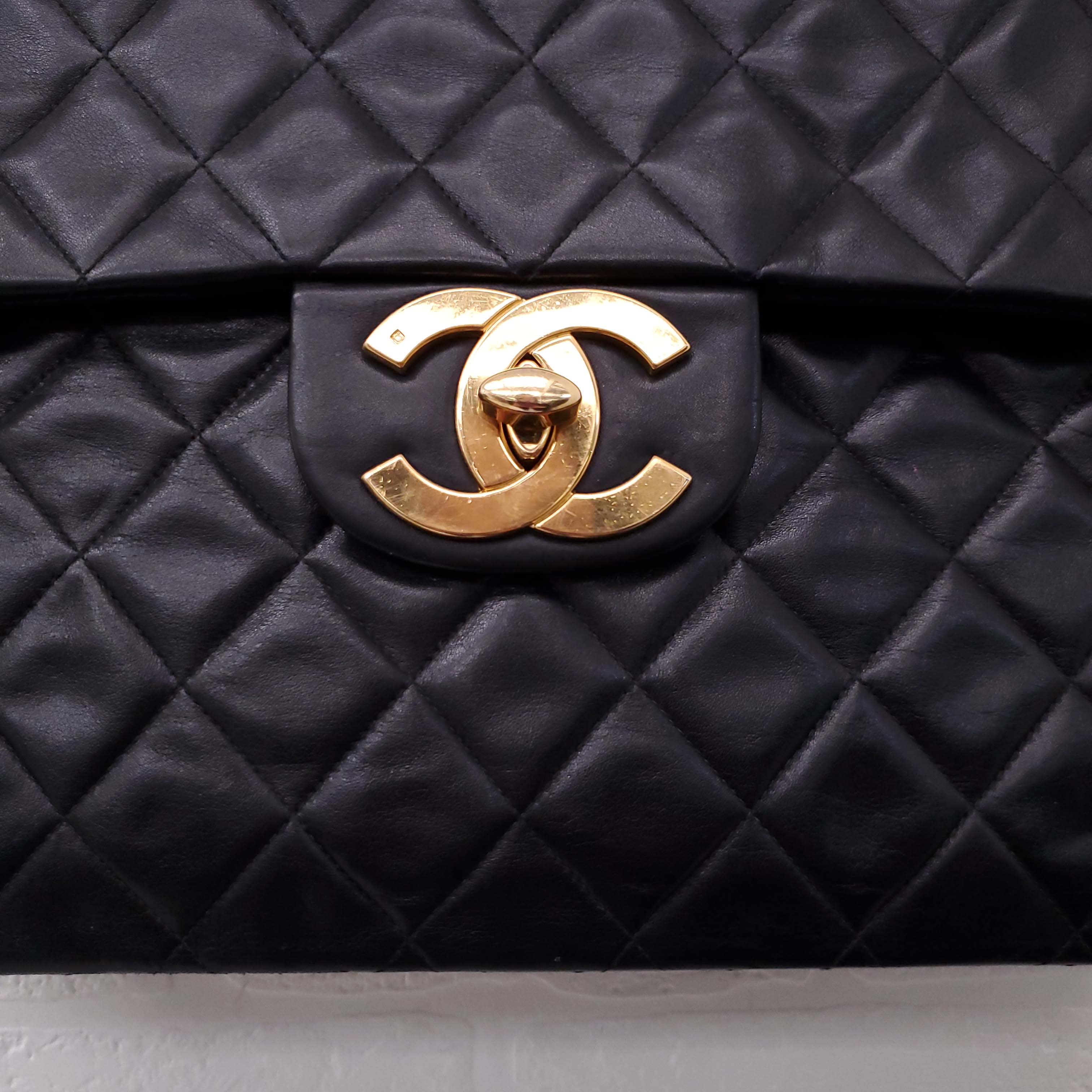 CHANEL LARGE BLACK VINTAGE CLASSIC FLAP WITH THE LARGE 24K GOLD CC