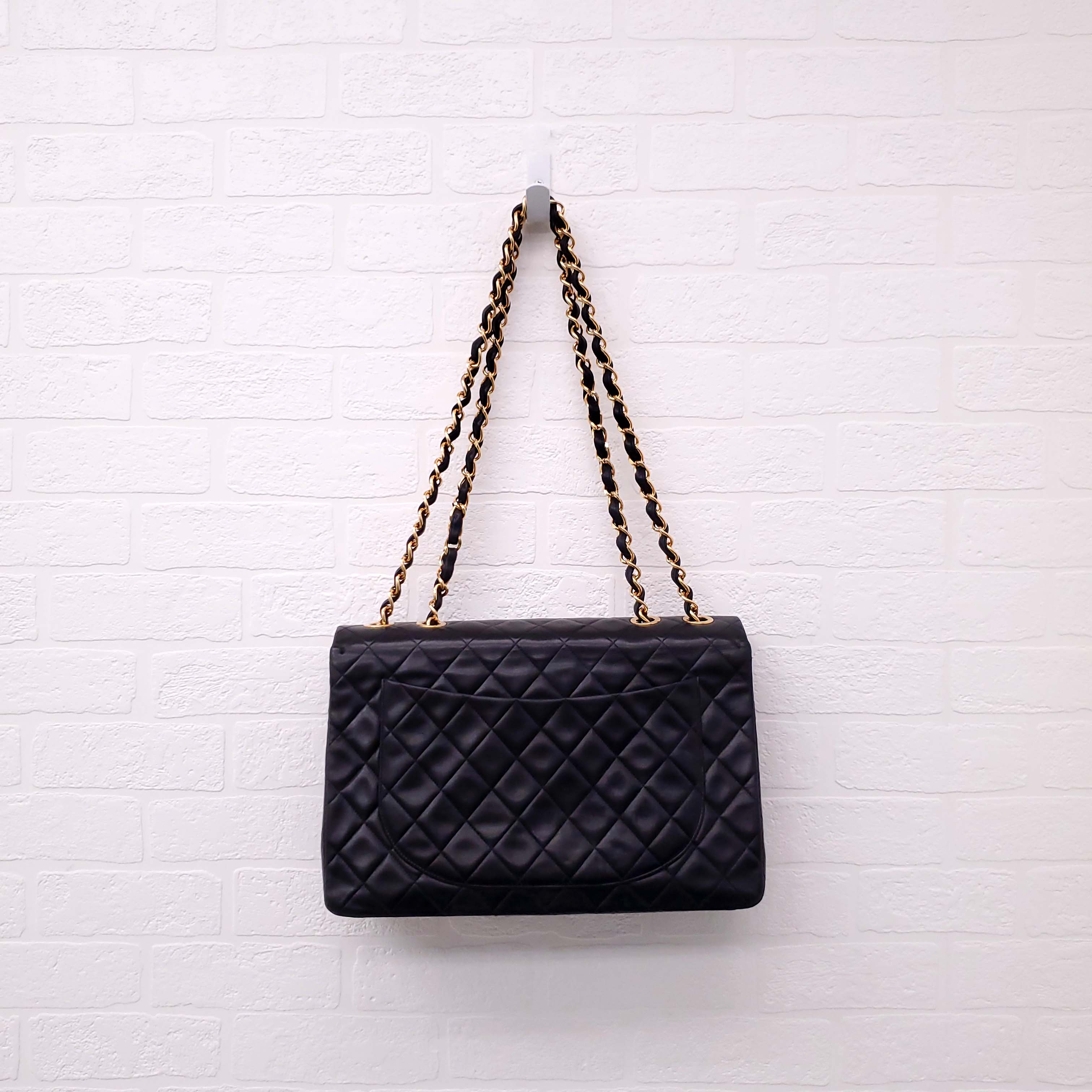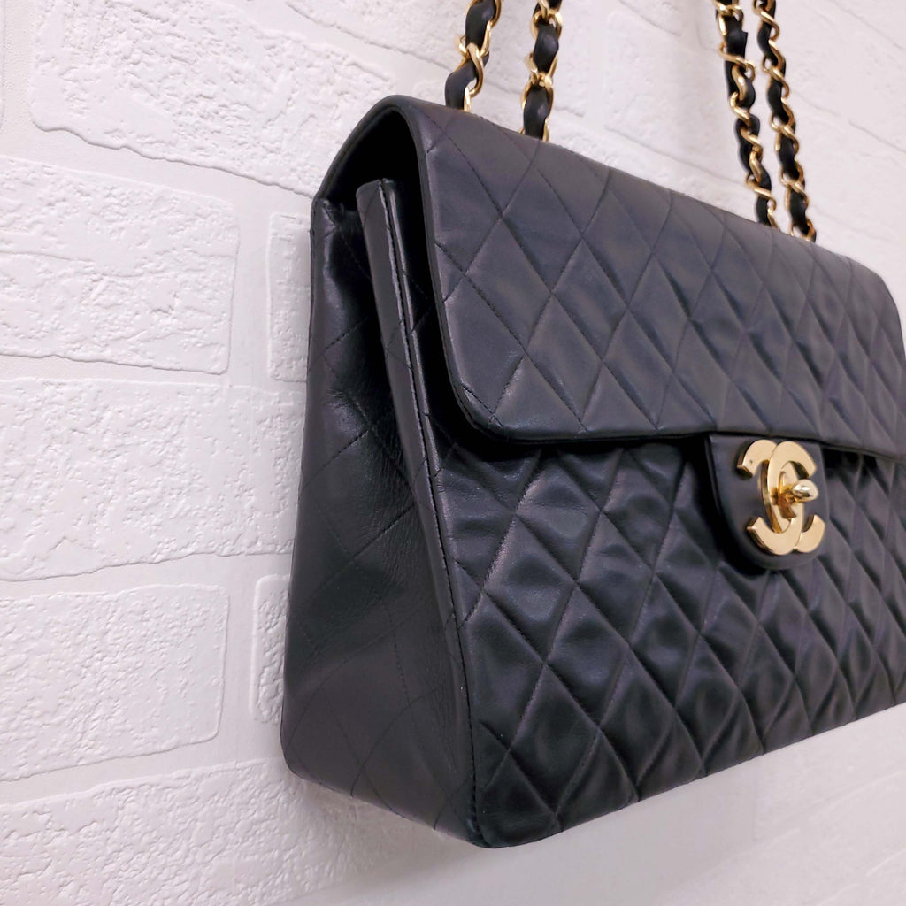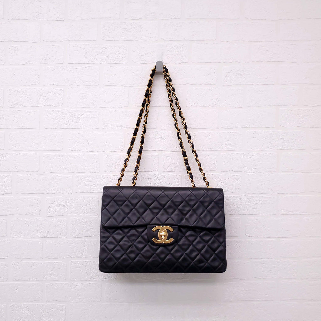 CHANEL LARGE BLACK VINTAGE CLASSIC FLAP WITH THE LARGE 24K GOLD CC