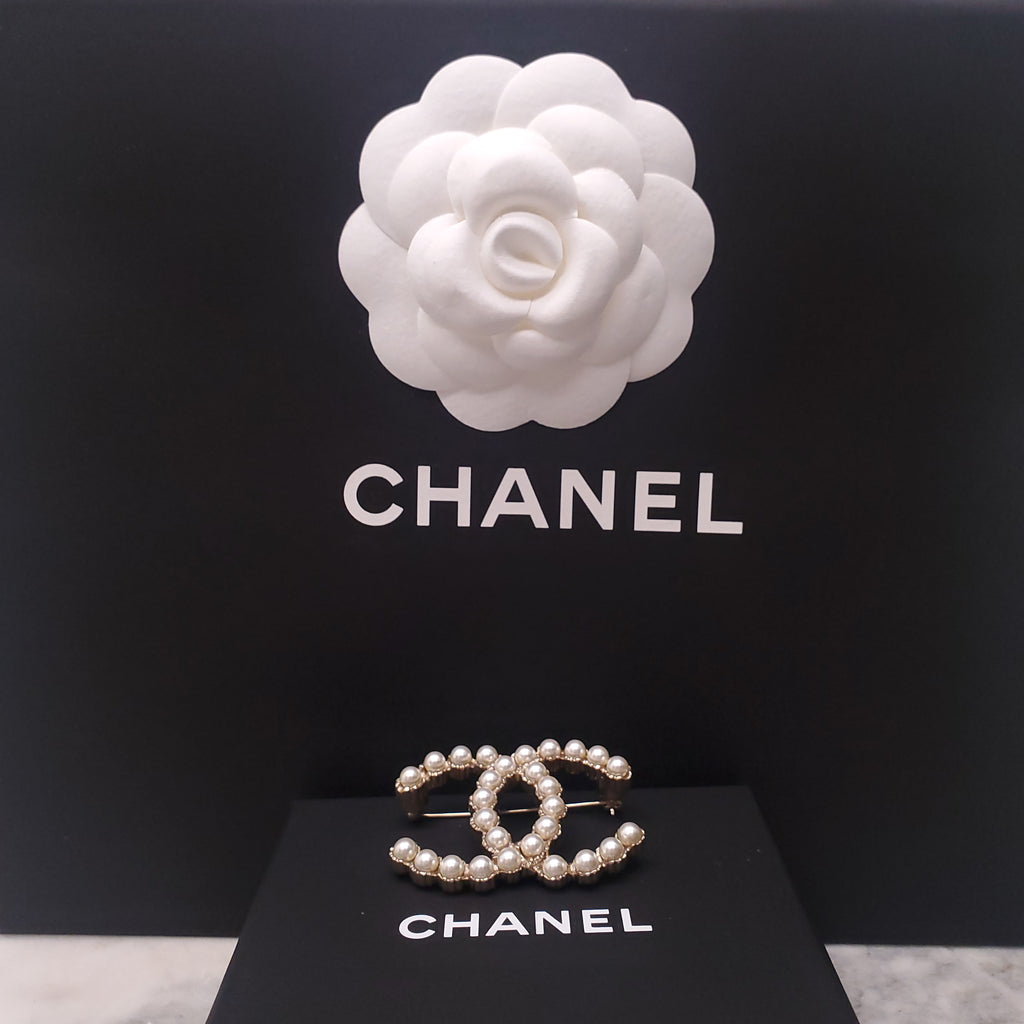 CHANEL PEARL LOGO BROOCH