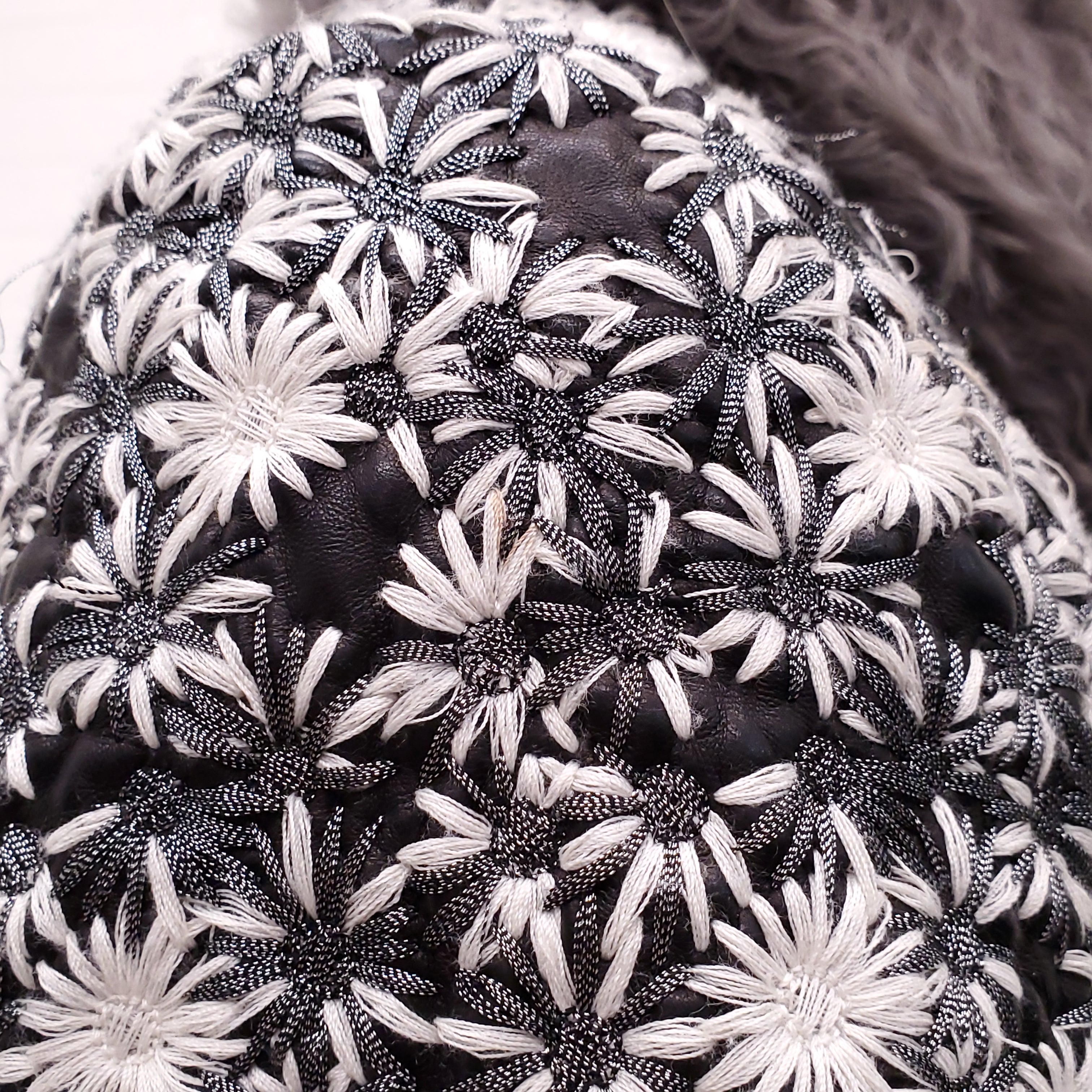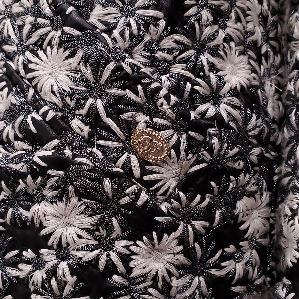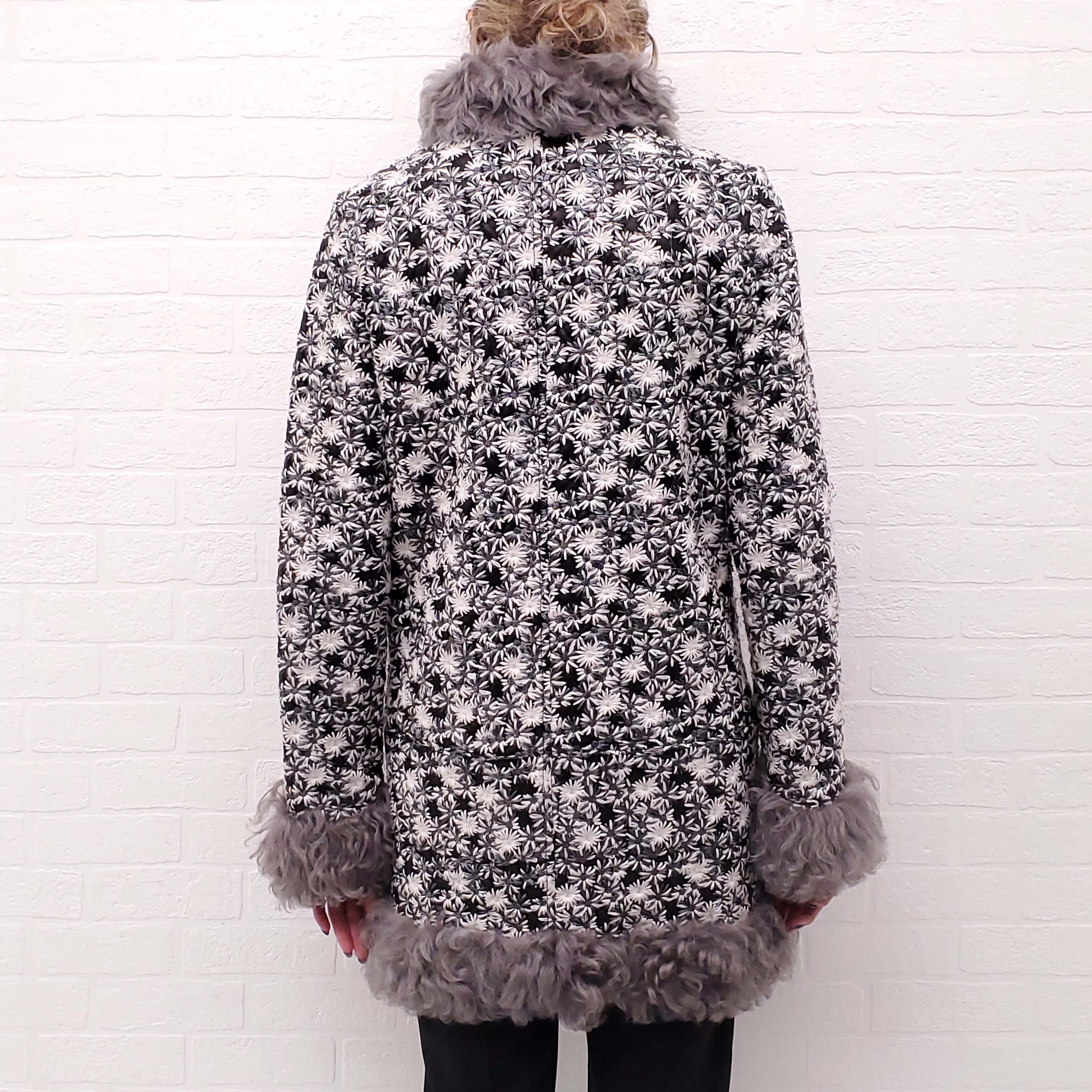 CHANEL RUNWAY LEATHER AND FUR FLORAL EMBROIDERED JACKET - SIZE 38