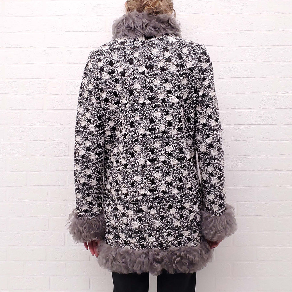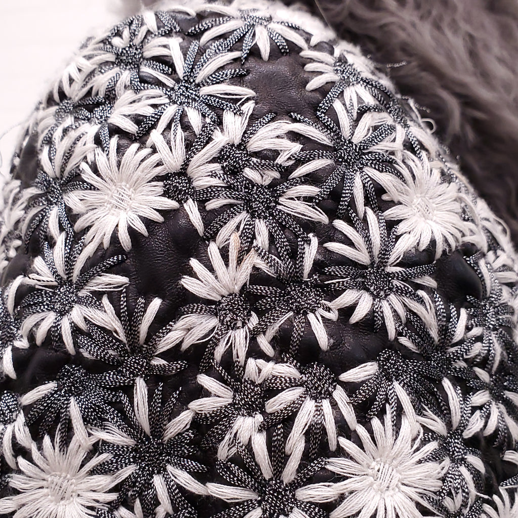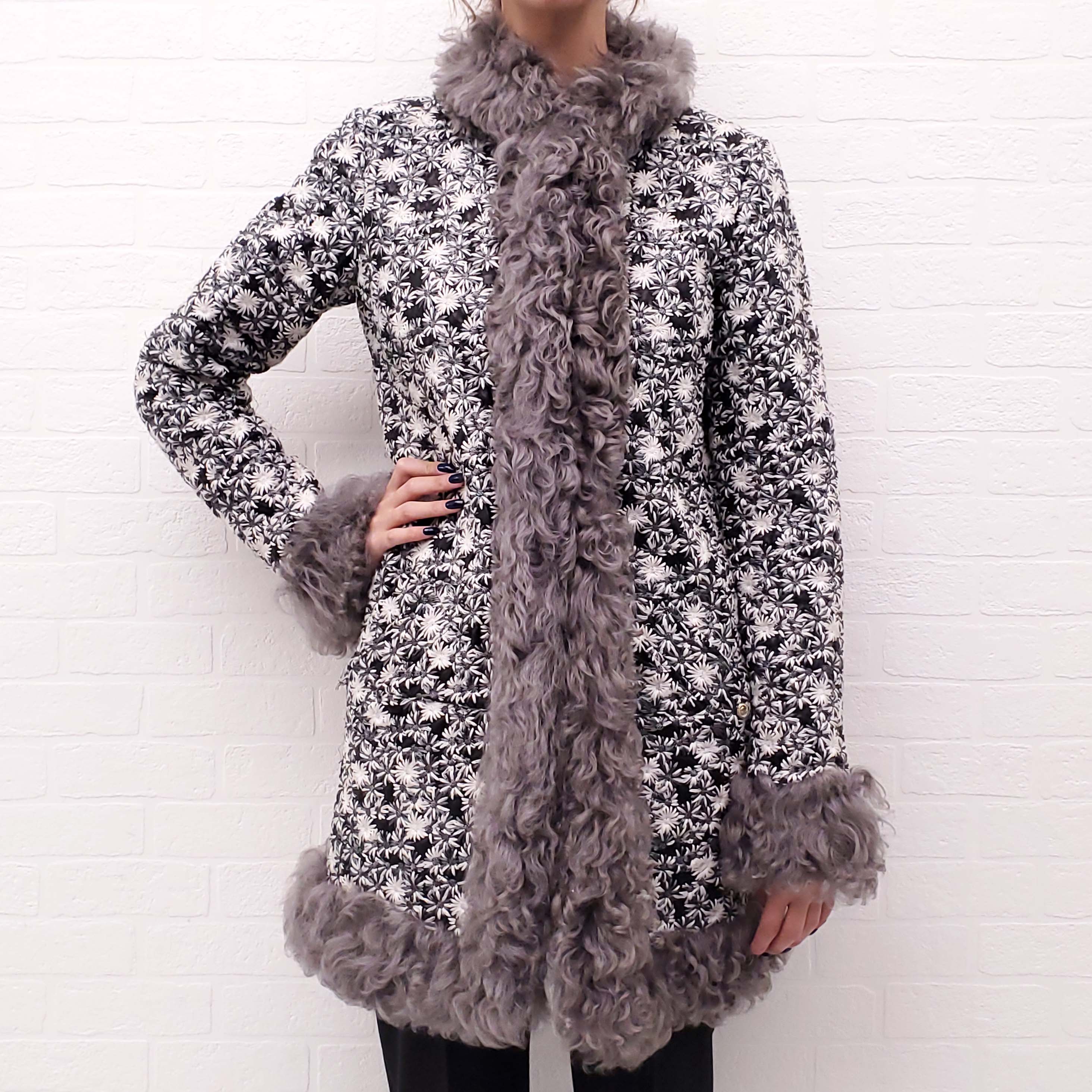 CHANEL RUNWAY LEATHER AND FUR FLORAL EMBROIDERED JACKET - SIZE 38