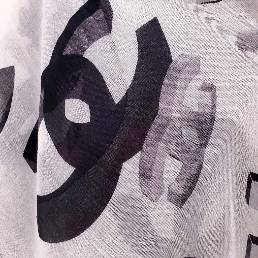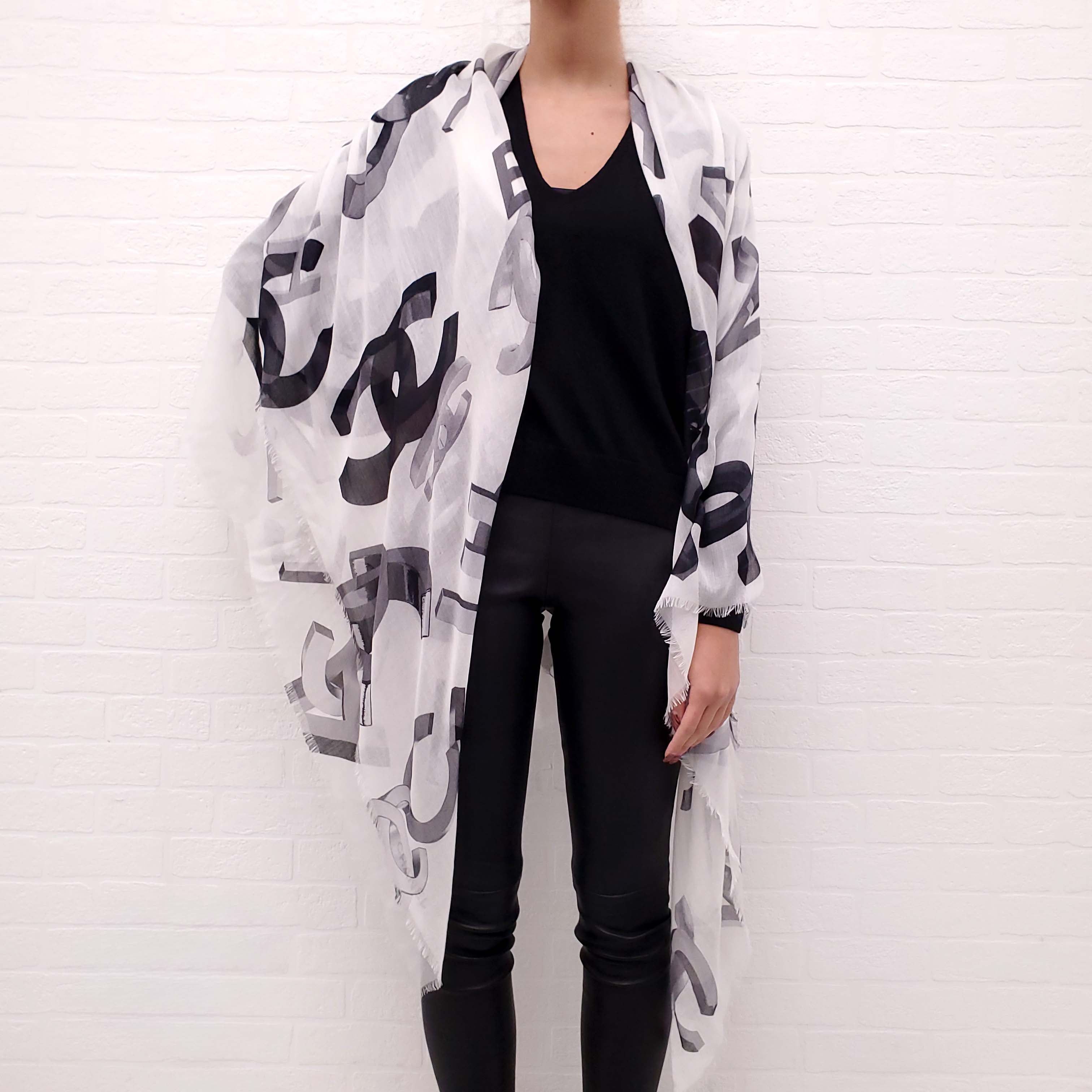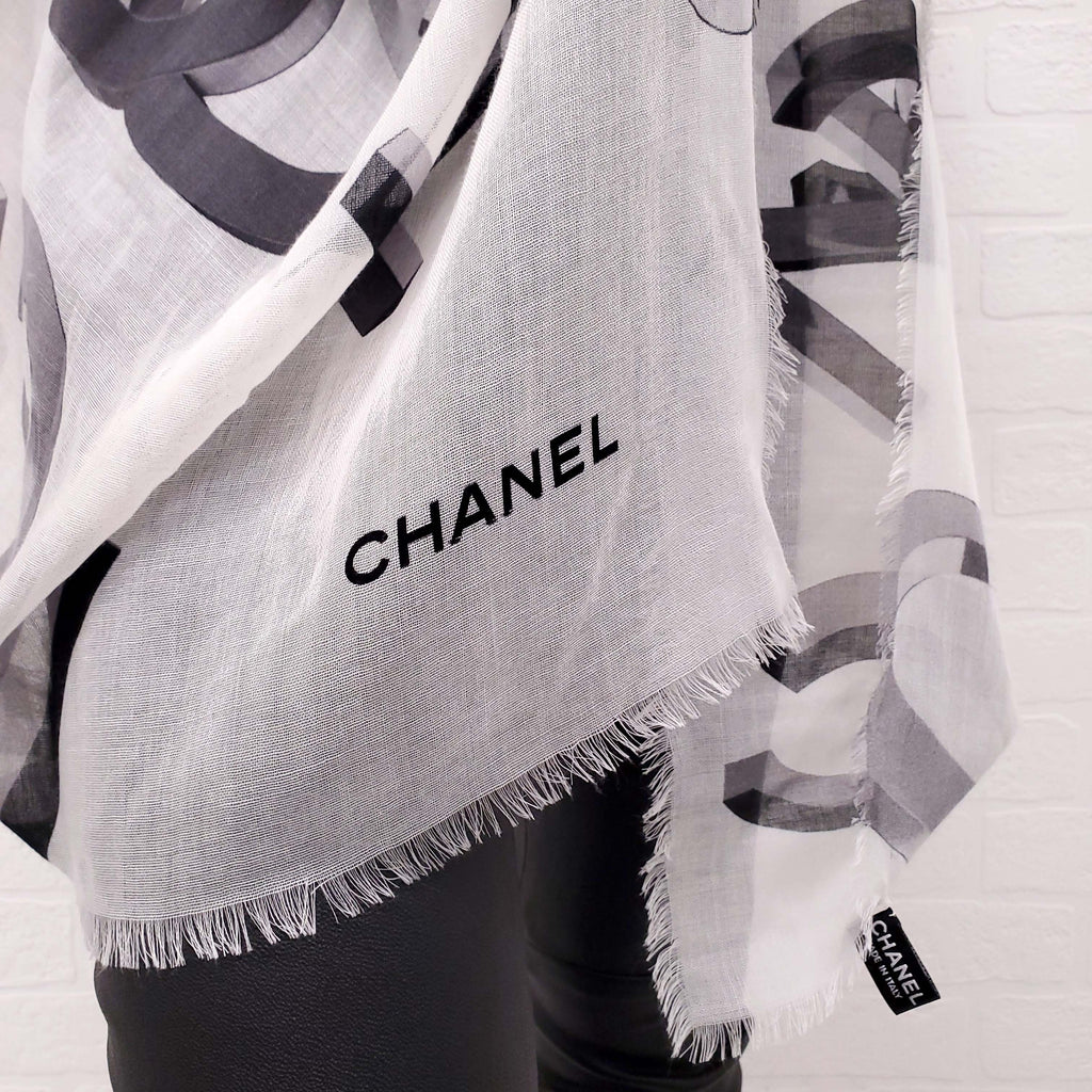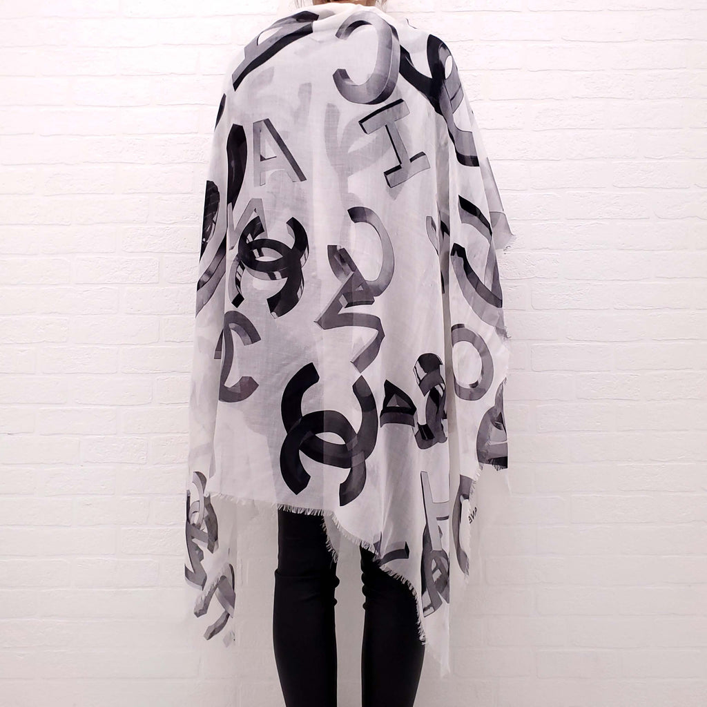 CHANEL WHITE AND BLACK LOGO SHAWL