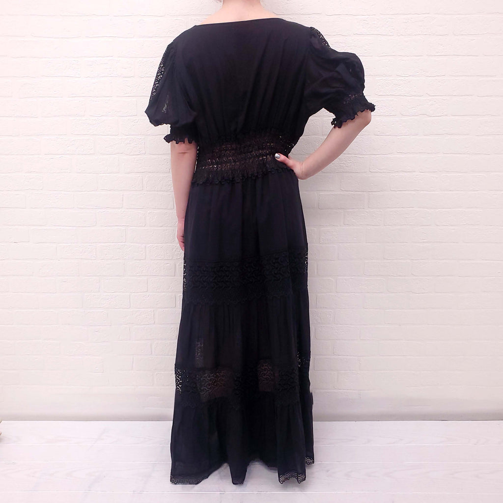 CHARO RUIZ IBIZIA BLACK LONG LACE DETAILED DRESS - SIZE L